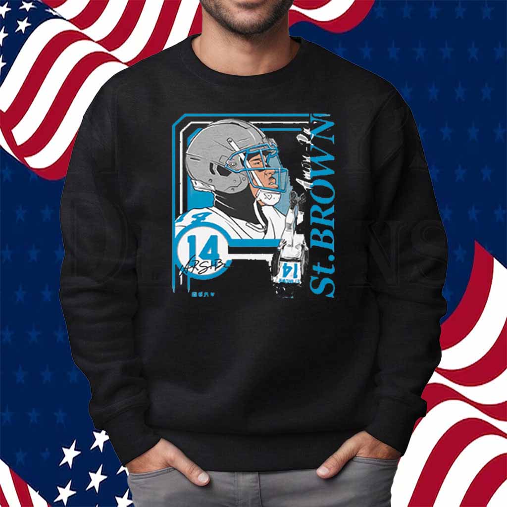Capture the electrifying spirit of Amon-Ra St. Brown with this exclusive collage frame shirt. Featuring a vibrant montage of iconic images, this shirt pays homage to the Detroit Lions’ rising star.