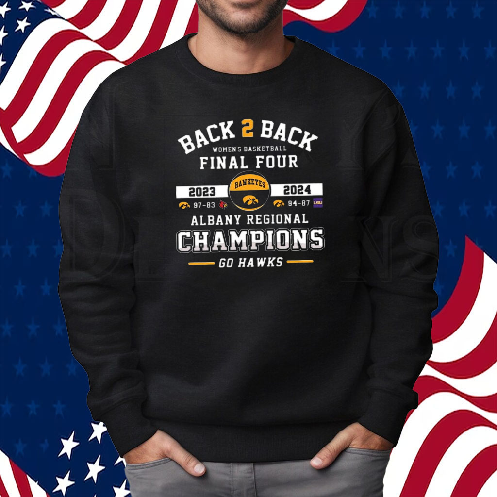 Back 2 Back Women’s Basketball 2024 Final Four Albany Regional Champions Go Hawks Shirt