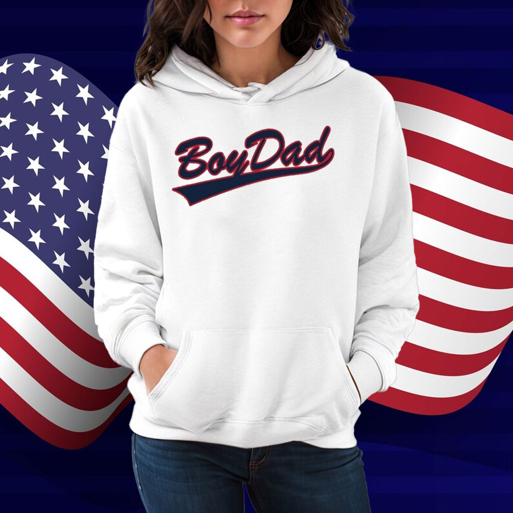 Bold varsity “Boy Dad” print across the chest
