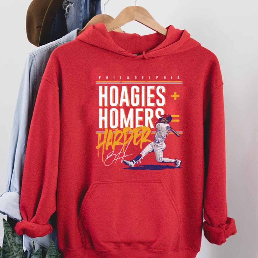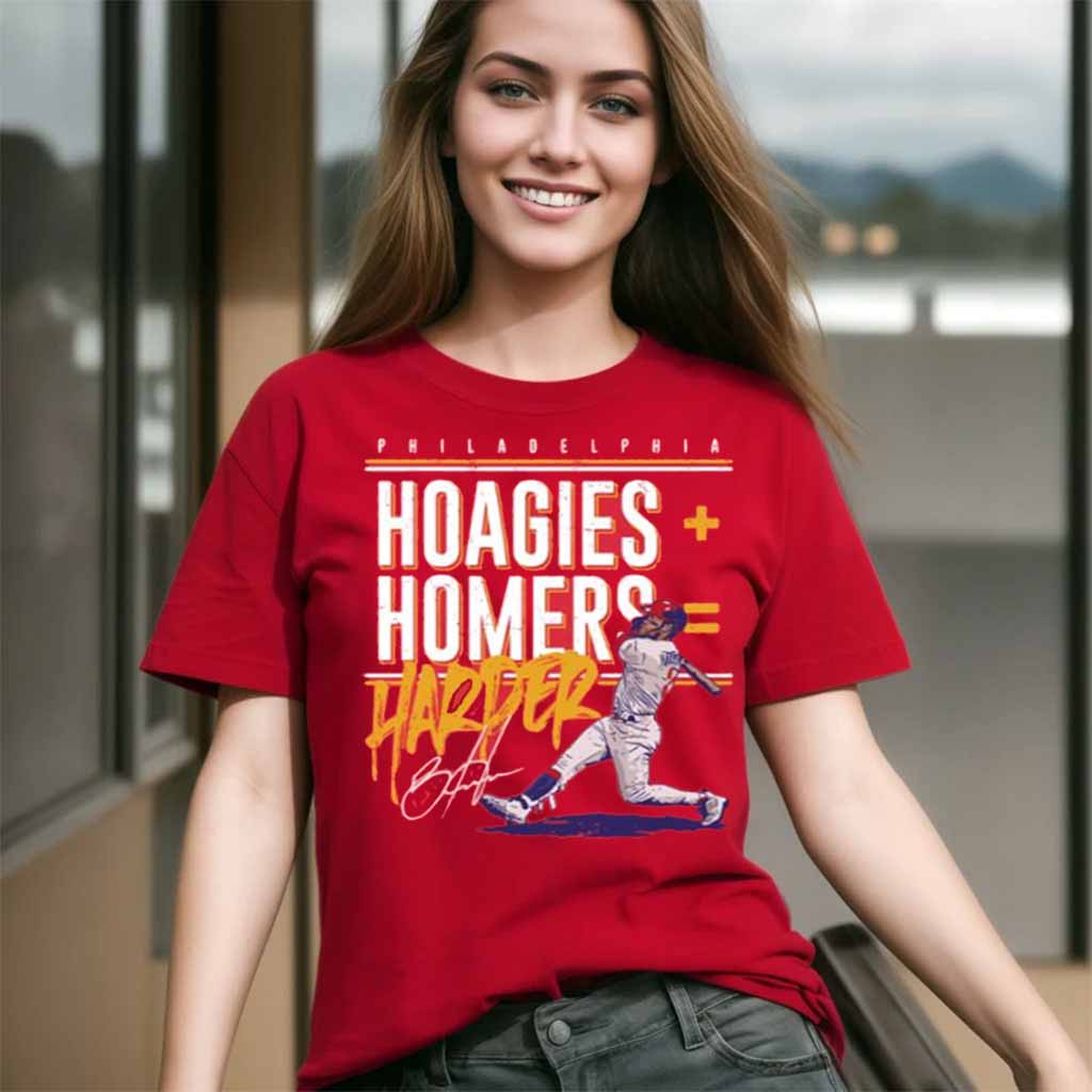 Step up to the plate and swing for the fences with the Bryce Harper Philadelphia Phillies Hoagies Homers Signature Shirt! This exclusive tee celebrates the electrifying energy of the Phillies’ star slugger and his iconic “Hoagies Homers” catchphrase.