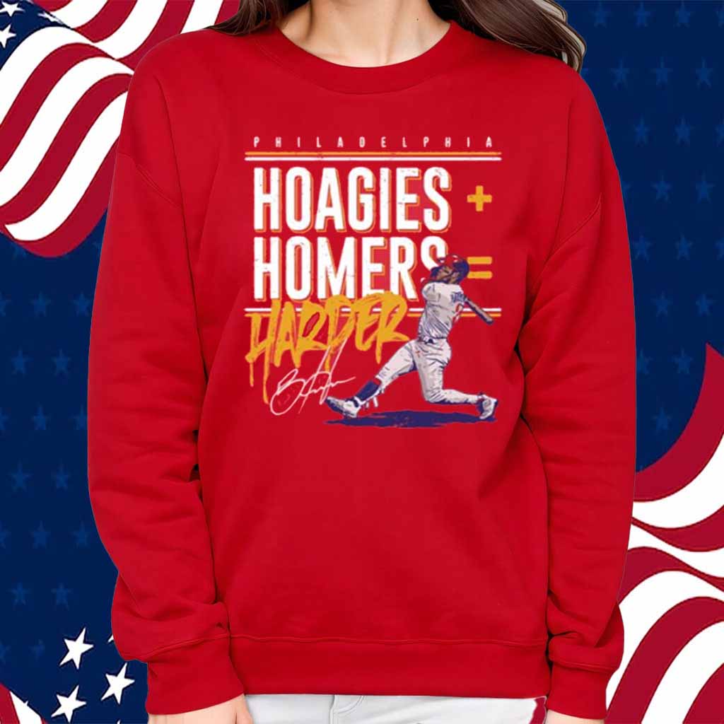Don’t miss out on the Bryce Harper Philadelphia Phillies Hoagies Homers Signature Shirt. Order yours today and join the Phillies faithful in cheering on their beloved slugger!