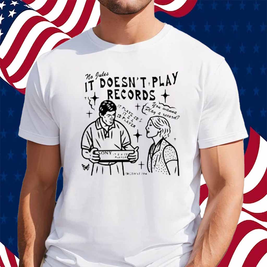 Don’t miss out on this must-have shirt for music lovers! Order your Cristocat No Jules It Doesn’t Play Records CD Player Shirt today and let your love for music shine through!