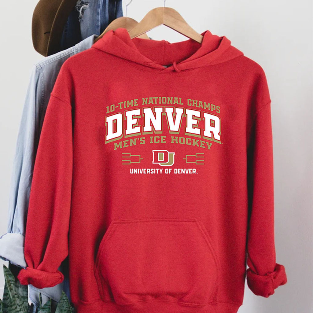 Celebrate the legendary legacy of the Denver Pioneers with this exclusive commemorative T-shirt. Emblazoned with the iconic banner proudly displaying the team’s 10 NCAA Men’s Ice Hockey National Championships, this shirt is a testament to the Pioneers’ unparalleled dominance on the ice.