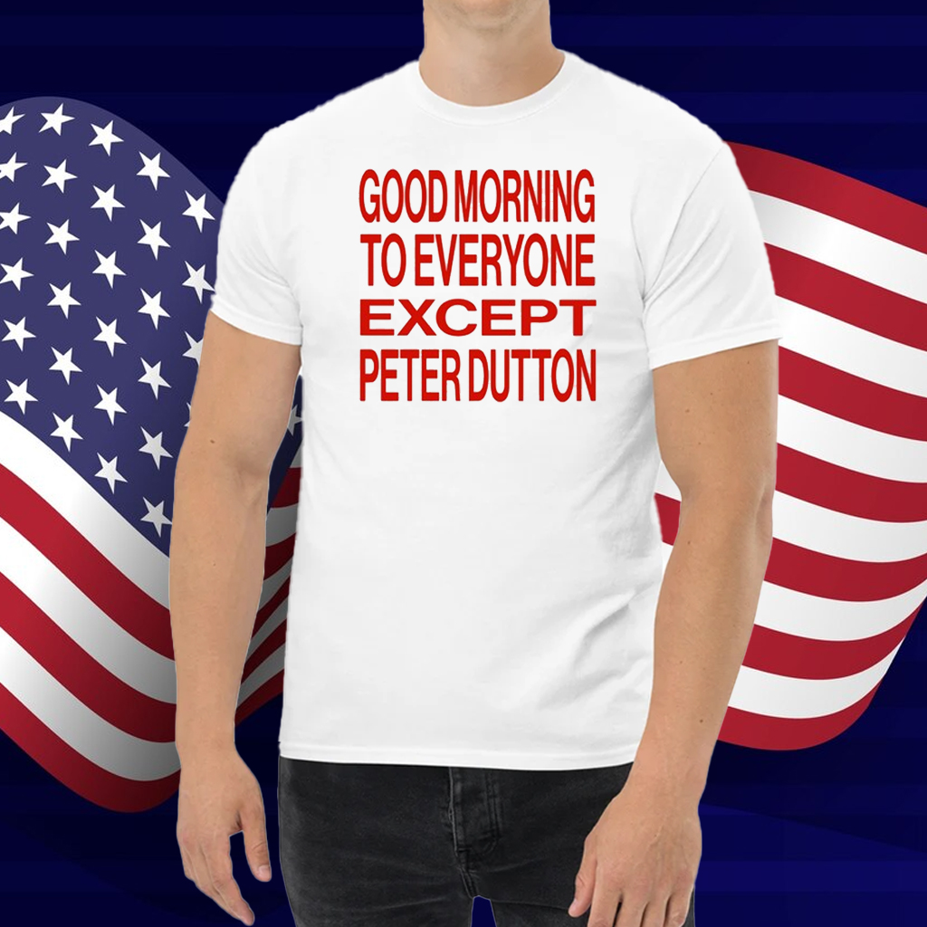 Start your day with a dash of humor and bold commentary with the Good Morning To Everyone Except Peter Dutton Shirt! Featuring a witty statement in clean, eye-catching typography, this shirt is perfect for anyone who loves to make a statement with their style.
