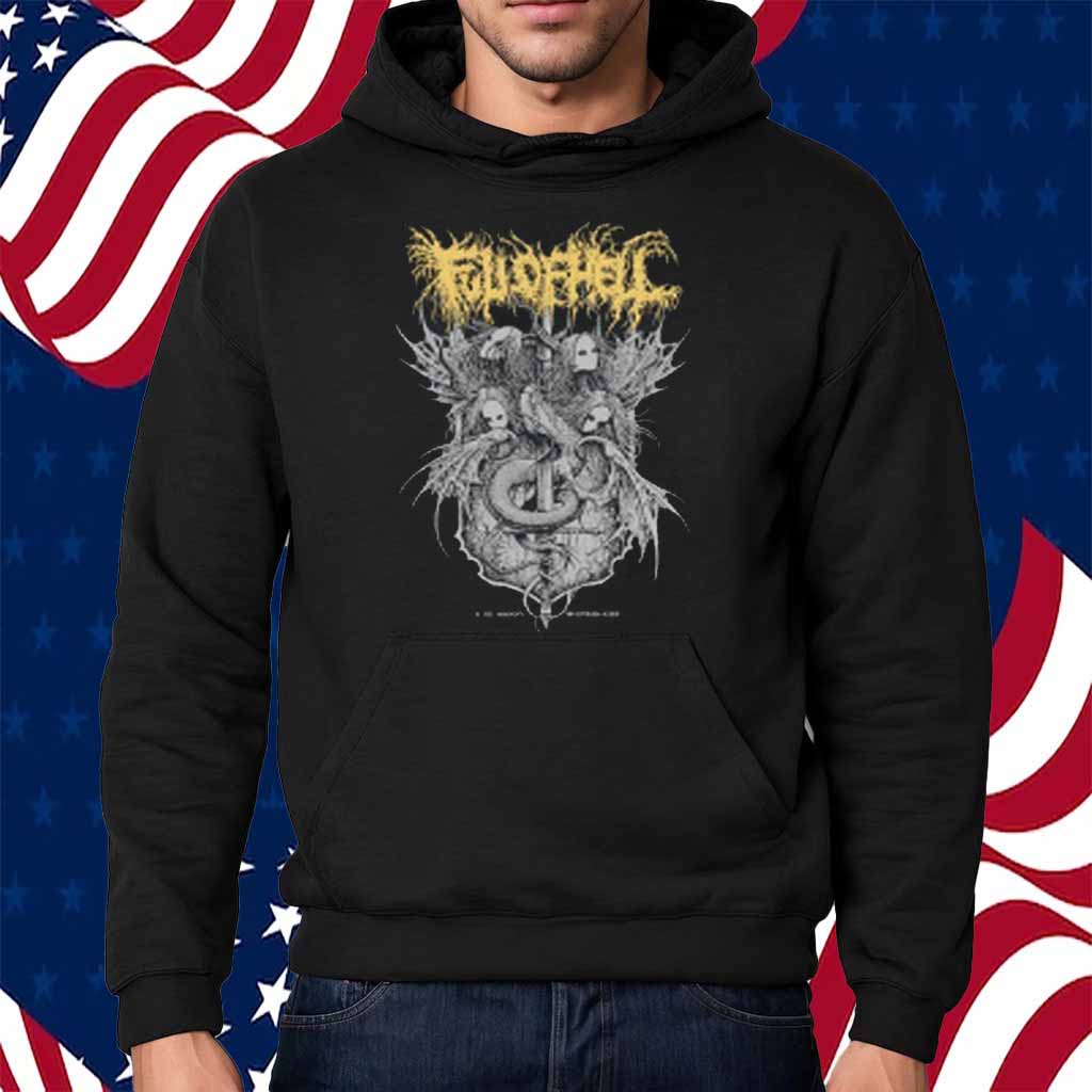 Embrace the enigmatic allure of the underworld with our Grindesign Tattoo Full Of Hell Shirt. This captivating garment is a testament to the raw power and rebellious spirit of heavy metal.