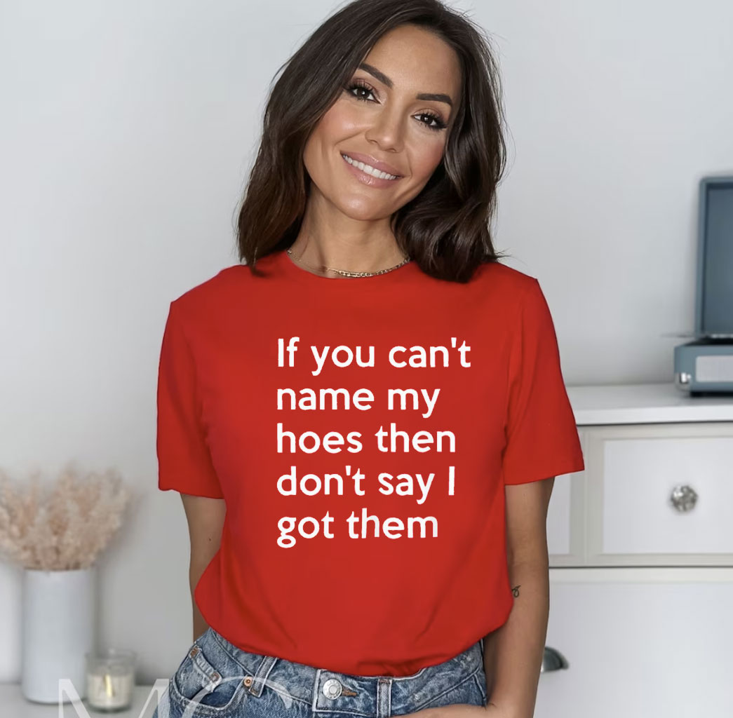 Step into the spotlight with our exclusive “If You Can’t Name My Hoes Then Don’t Say I Got Them” shirt, a bold statement piece that exudes confidence and individuality.