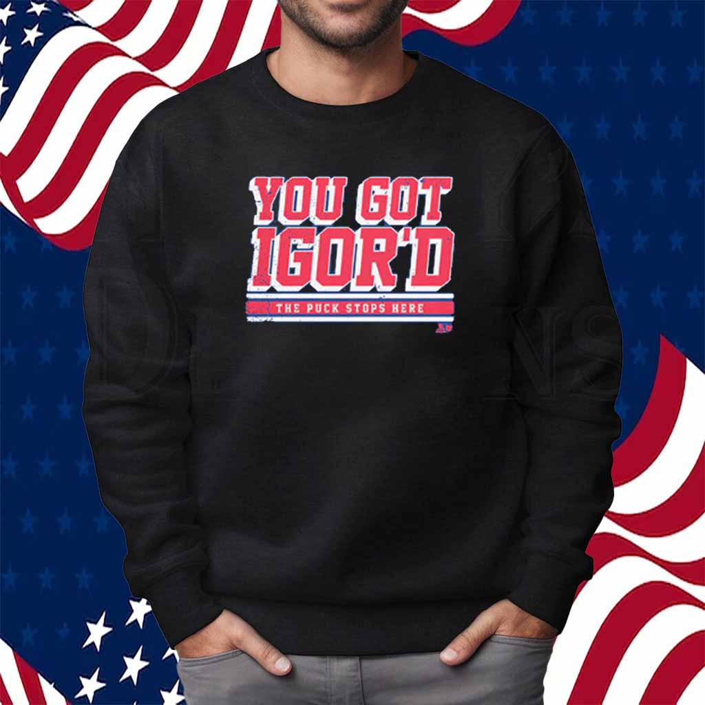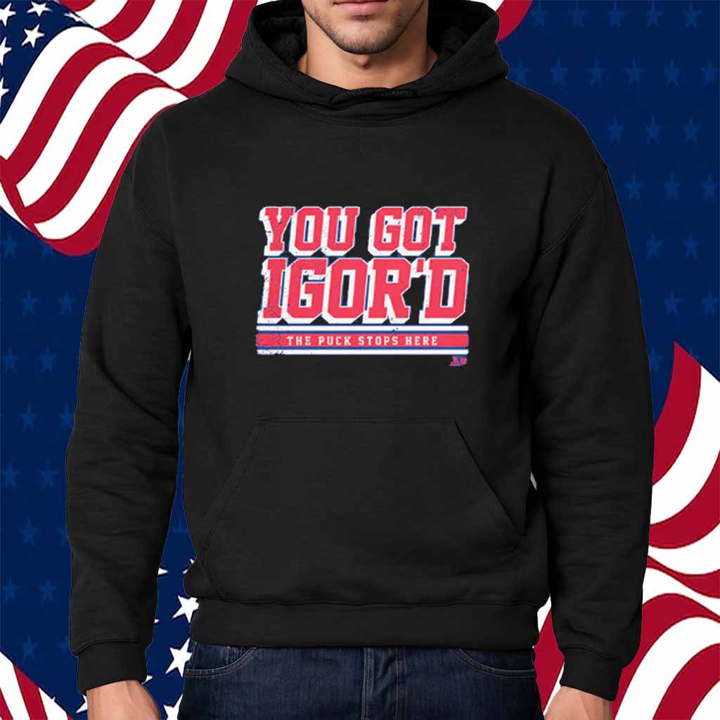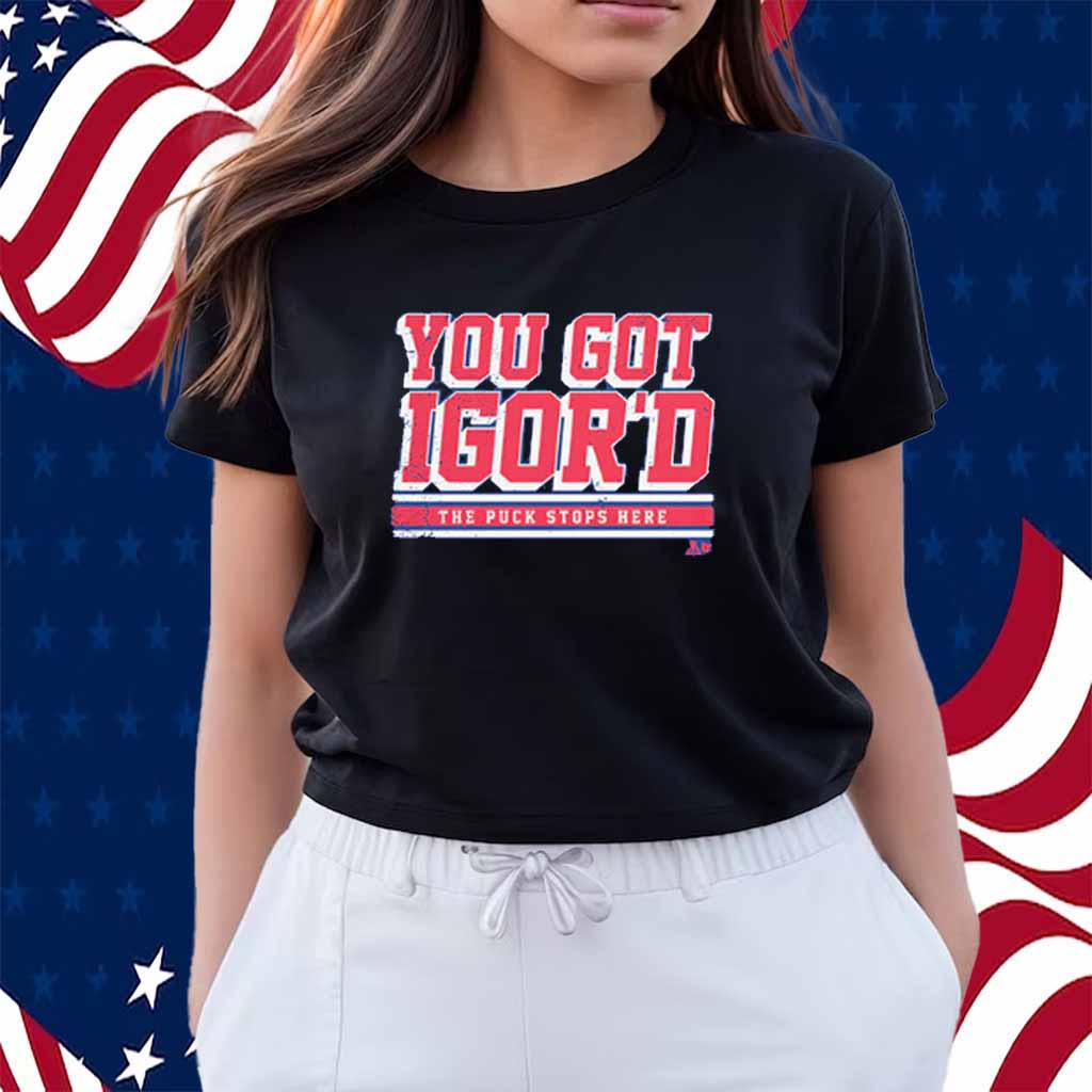 Experience the thrill of the game with the exclusive IGOR SHESTERKIN YOU GOT IGOR’D SHIRT. This premium-quality shirt celebrates the legendary New York Rangers goaltender and his iconic “Igor’d” catchphrase.