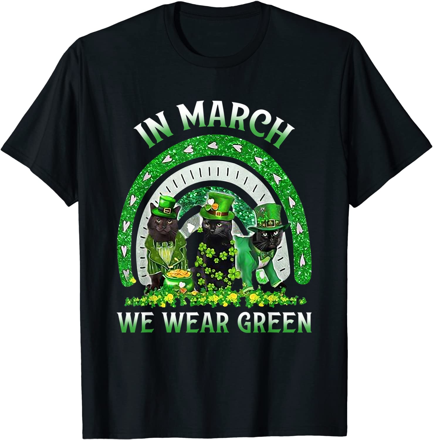 In March We Wear Green Cats Irish St Patrick’s Day Rainbow Unisex Shirt