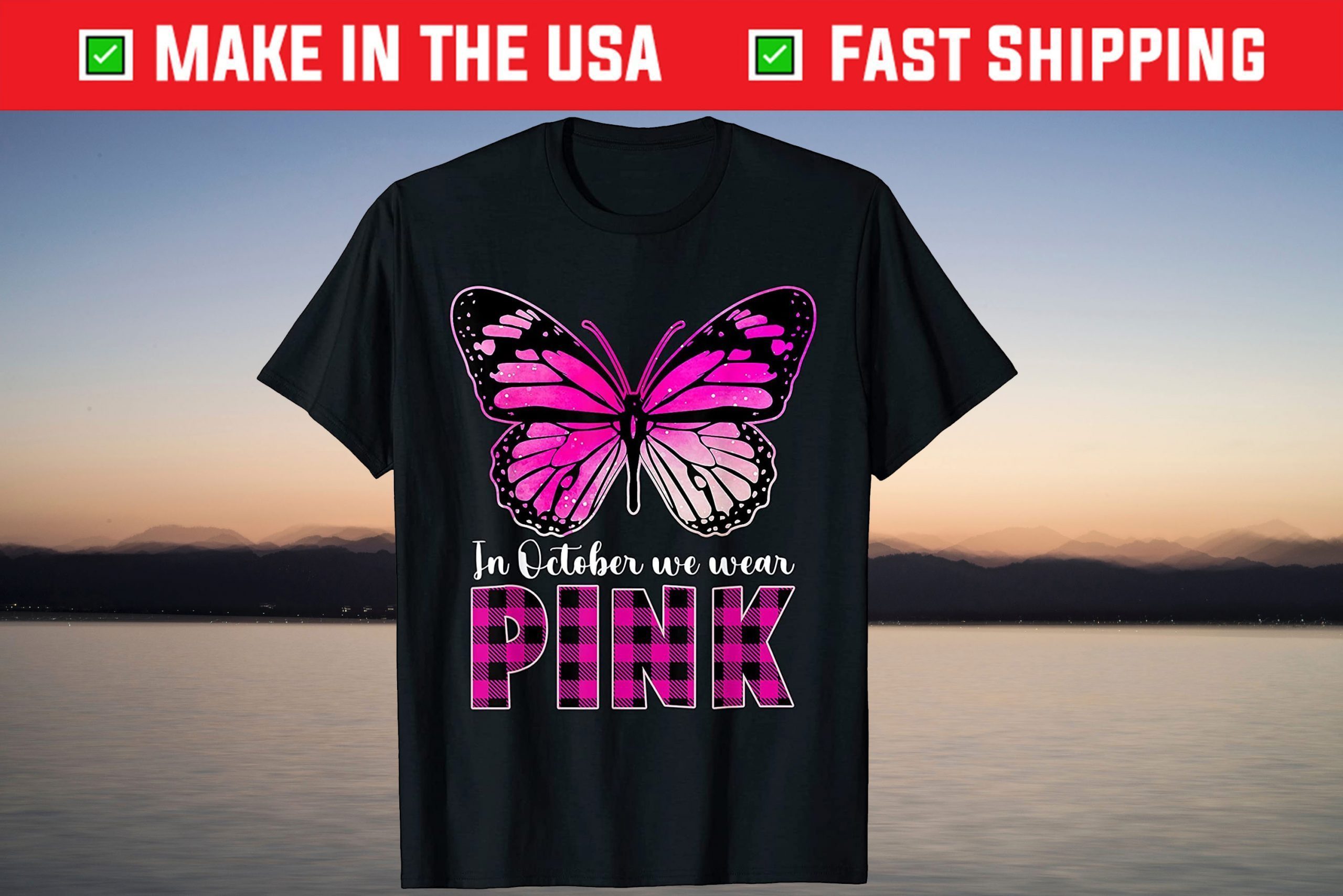 In October We Wear Pink – Breast Cancer Awareness Butterfly Tee Shirt