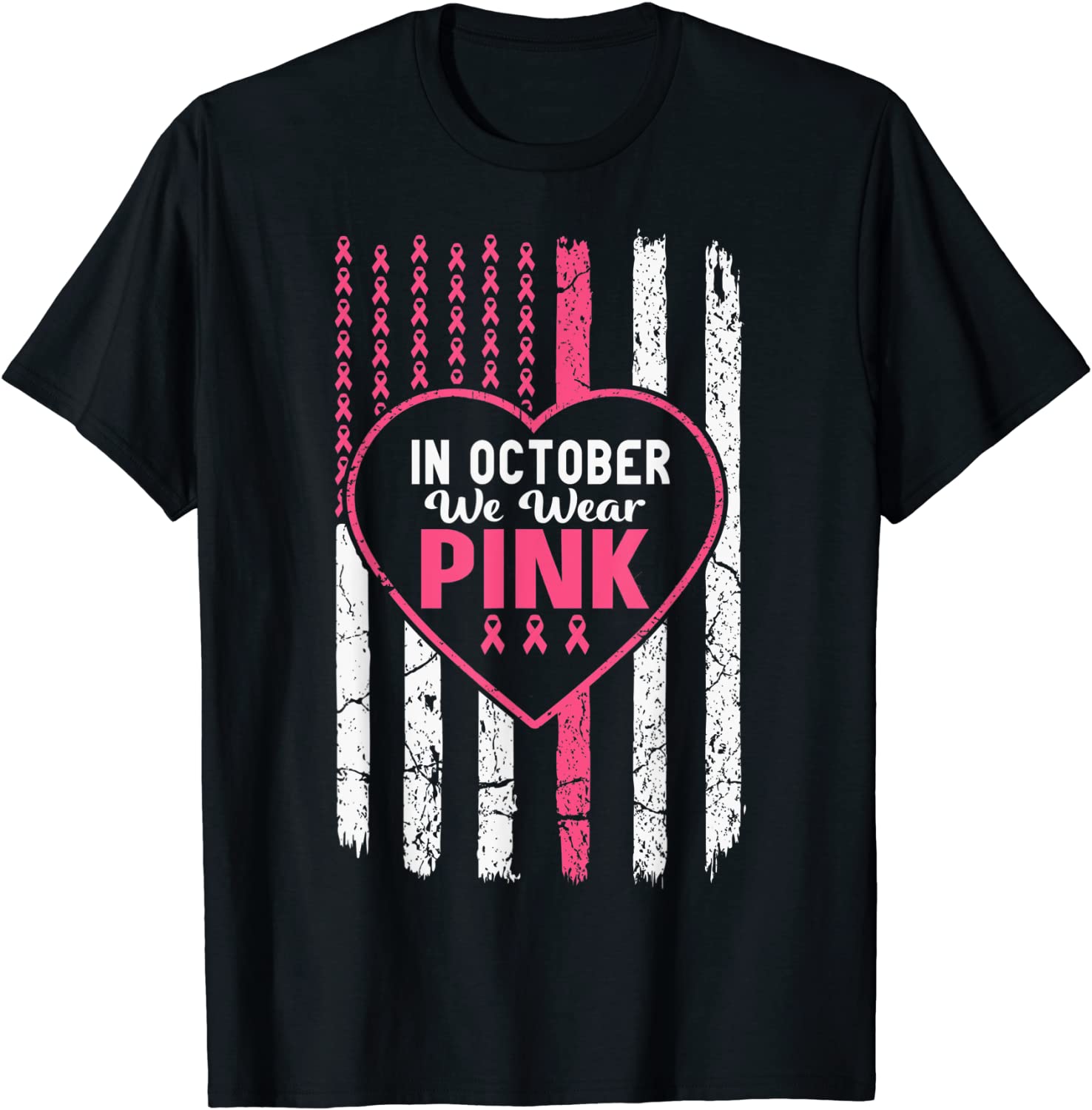In October We Wear Pink USA Flag Pink Ribbon Breast Cancer Gift Shirt