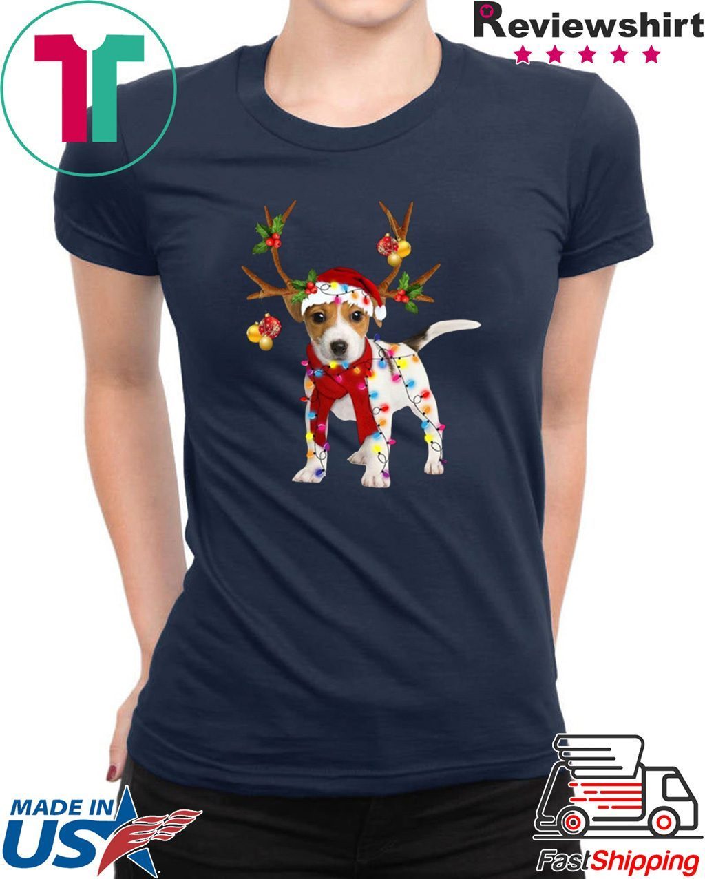 Jack Russell Terrier Reindeer Christmas light shirt