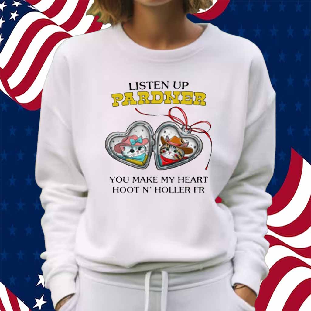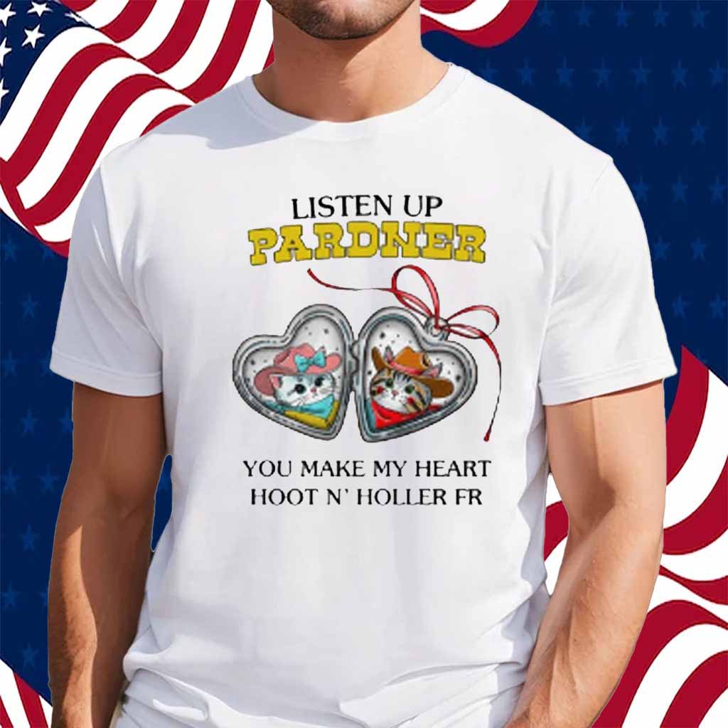 So, saddle up, partner, and grab your “Listen Up Pardner You Make My Heart Hoot N’ Holler Fr” shirt today. It’s the perfect way to show the world that you’re a true cowboy at heart.