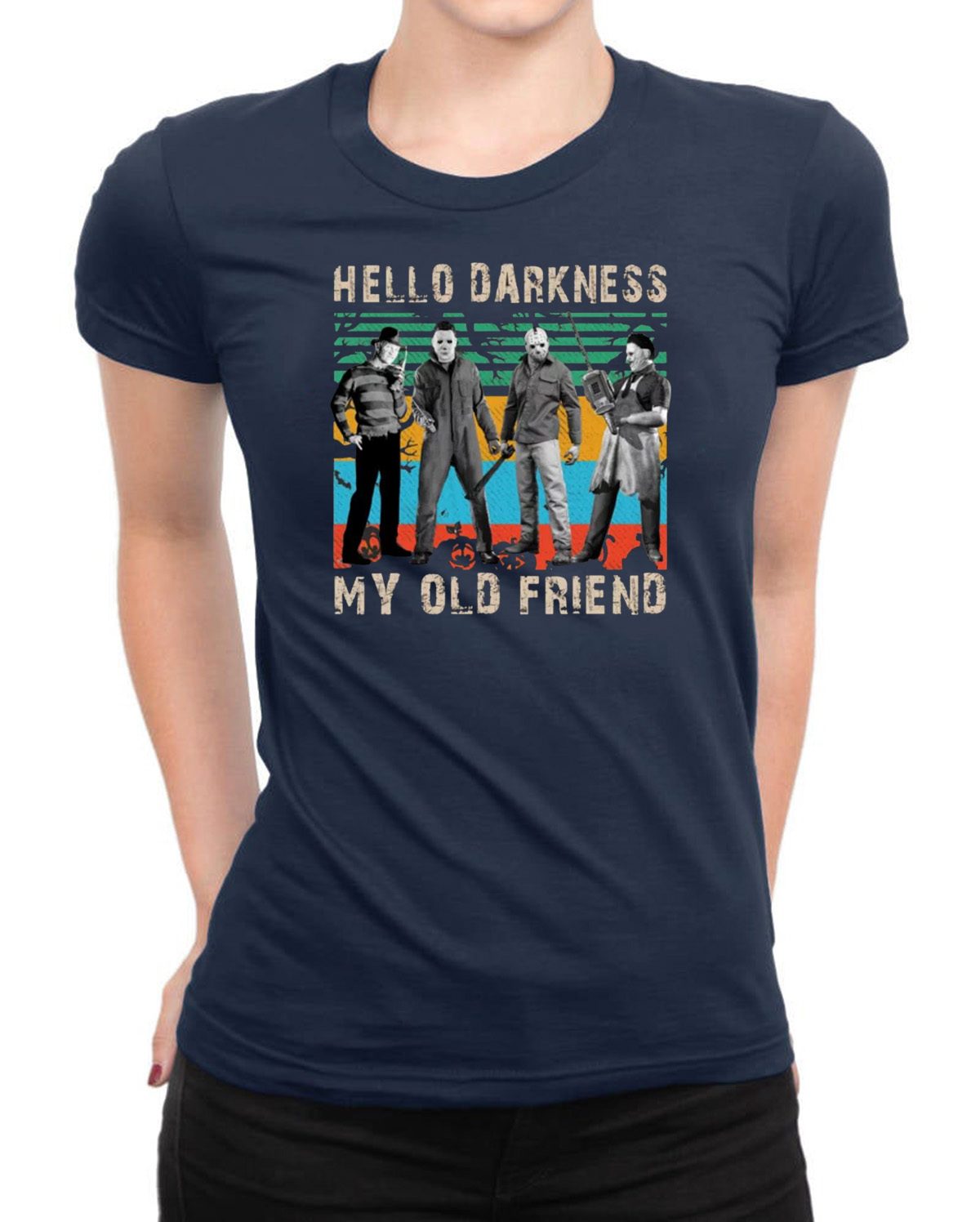 Krueger Michael Jason Leatherface Hello Darkness my old friend shirt Perfect Birthday Gift Idea for Men / Women / Kids .Awesome present for dad, father, mom, brother, uncle, husband, wife, adult, son, youth, boy, girl, baby, teen, friend on Birthday / Christmas Day