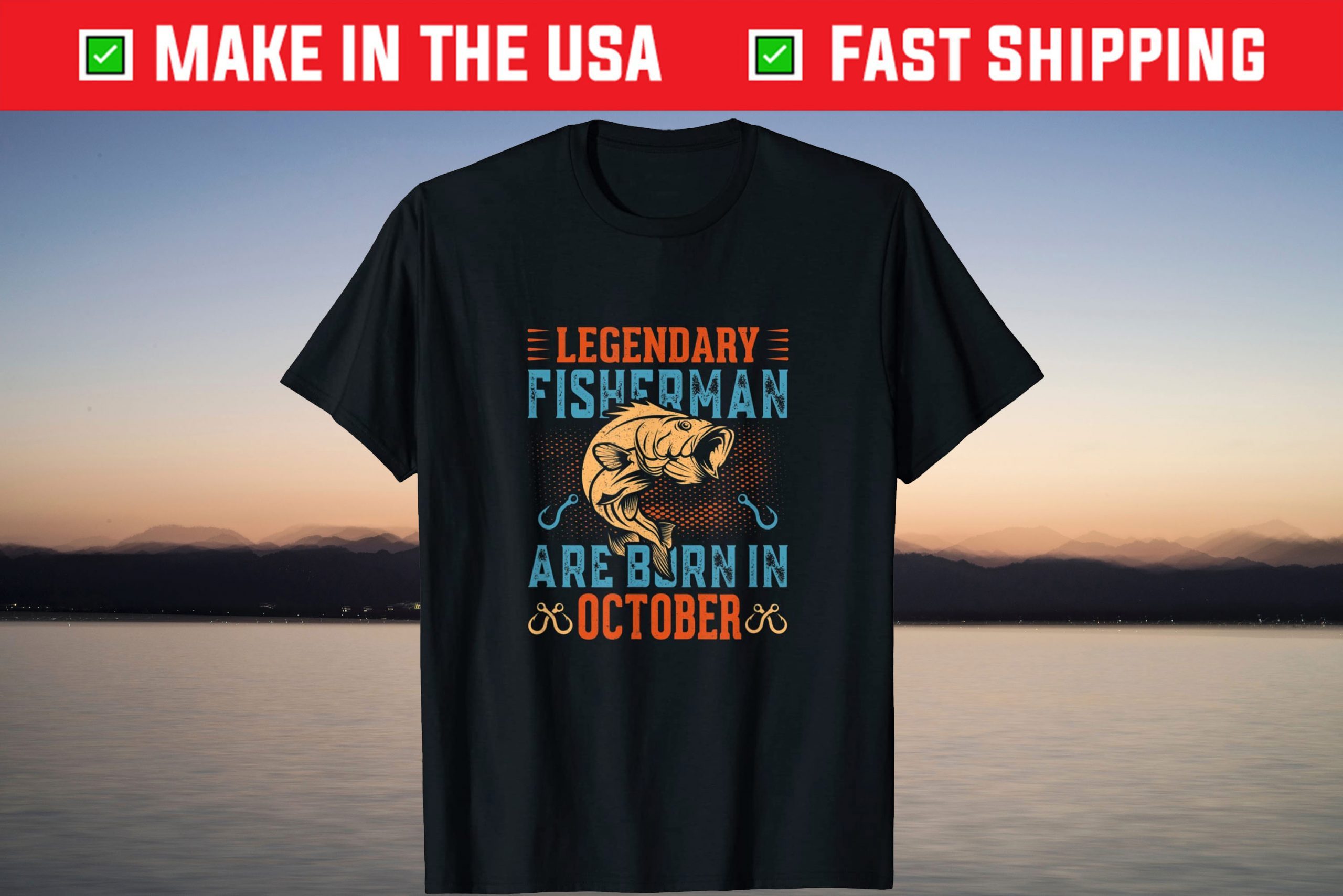 Legendary Fisherman Born in October Fishing Dad Tee Shirt