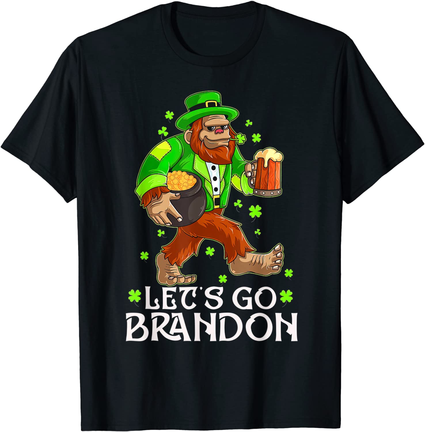 Lets Go Brandon Bigfoot Laprechaun Irish Flag Lucky Clovers Unisex Shirt