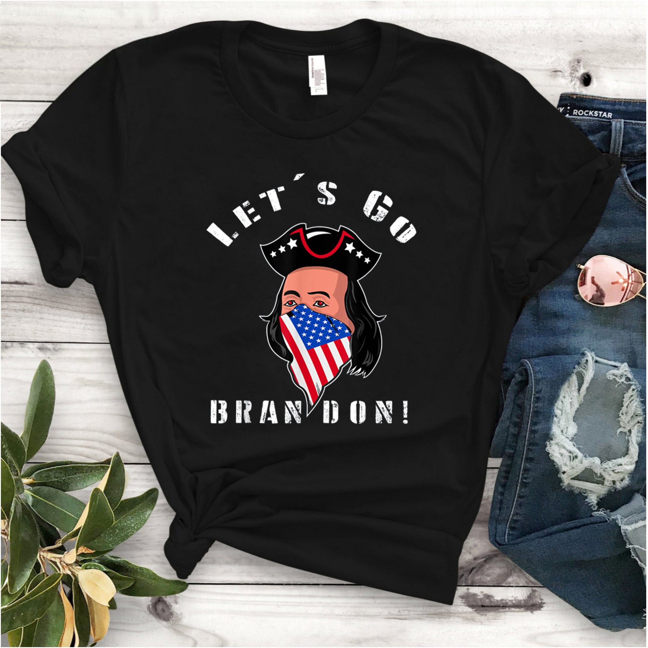 Let’s Go Brandon Patriot With Mask US Flag Unisex Shirt
