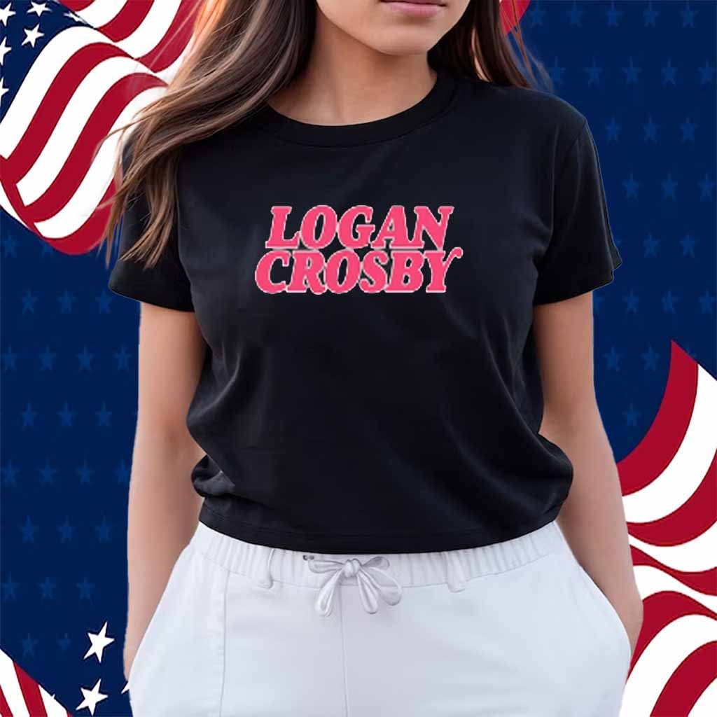 Bold Pink Lettering: The shirt’s captivating focal point is its vibrant pink lettering, which spells out “Logan Crosby” in a stylish and eye-catching font.
