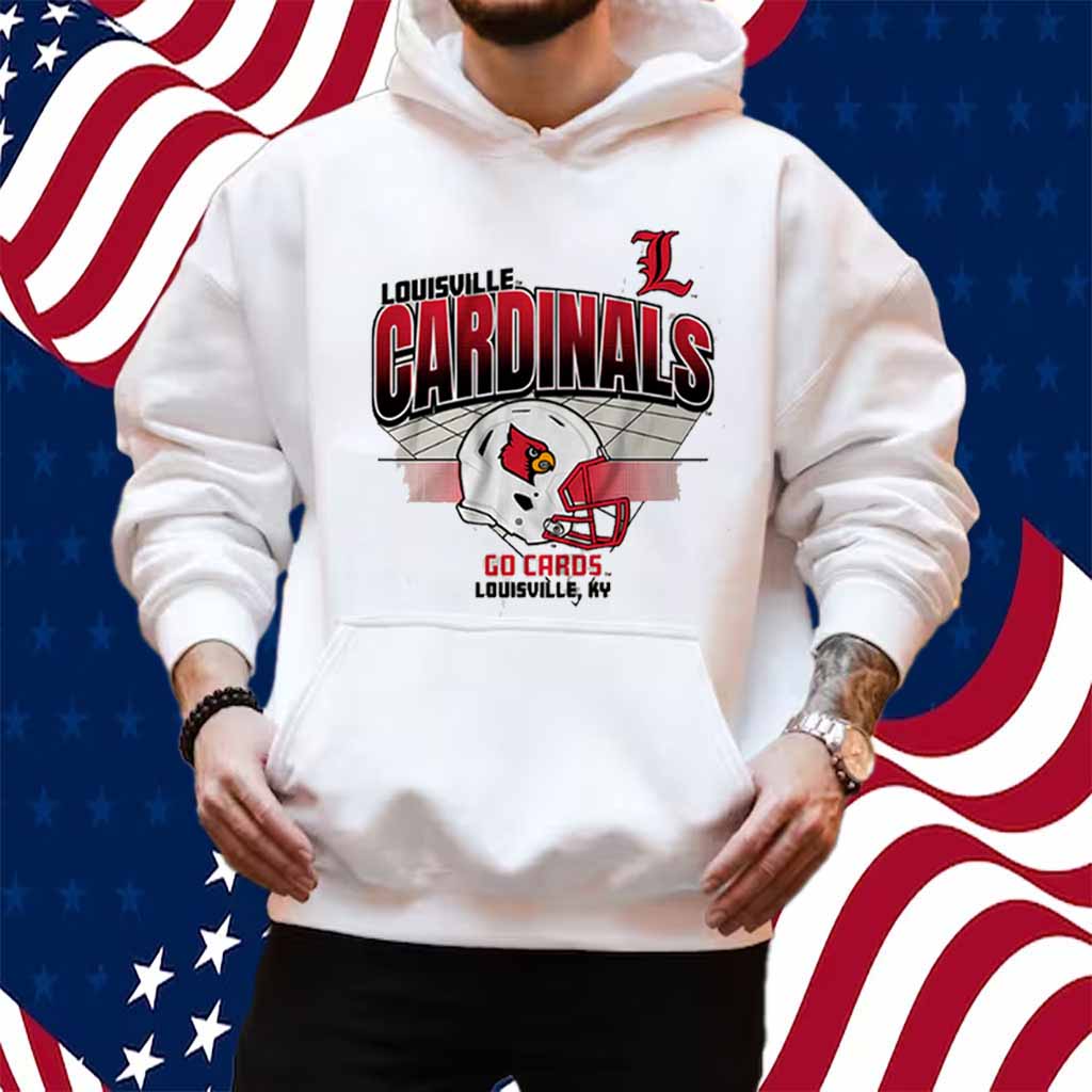 The bold and vibrant helmet grid design emblazoned on the front of the shirt instantly commands attention. The intricate details and vibrant colors pay homage to the iconic Louisville Cardinals football helmet, making it a must-have for any true fan.