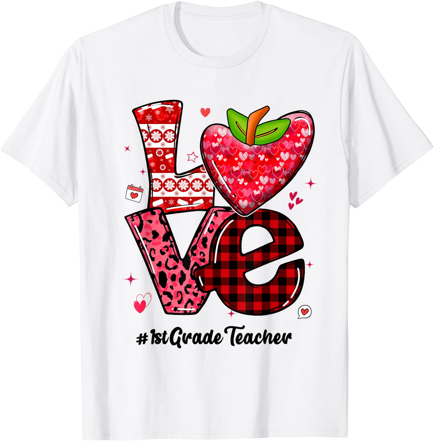 Love 1st Grade Teacher Leopard Heart Valentines Day Unisex Shirt