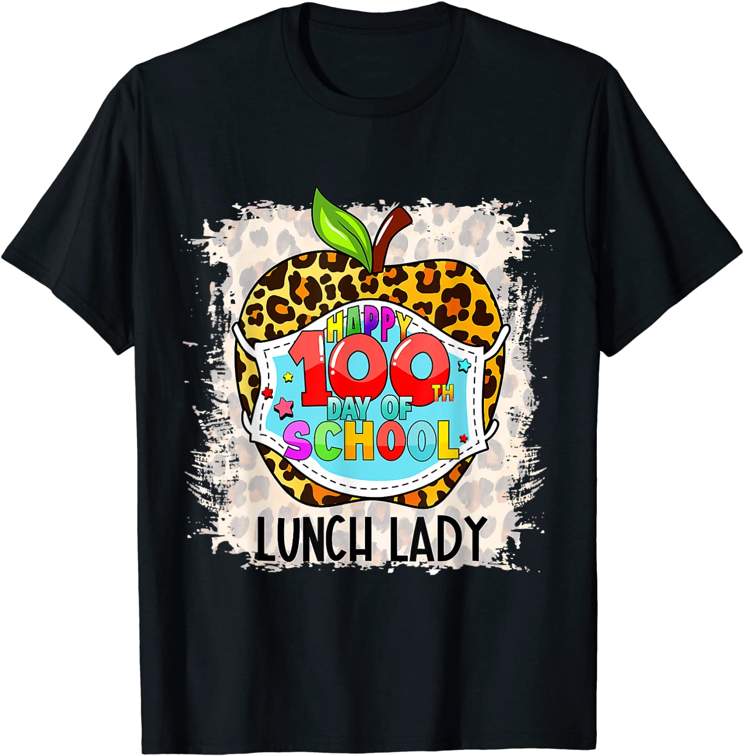 Lunch Lady Life Happy 100th Day Of School Face Mask Leopard Classic T-Shirt
