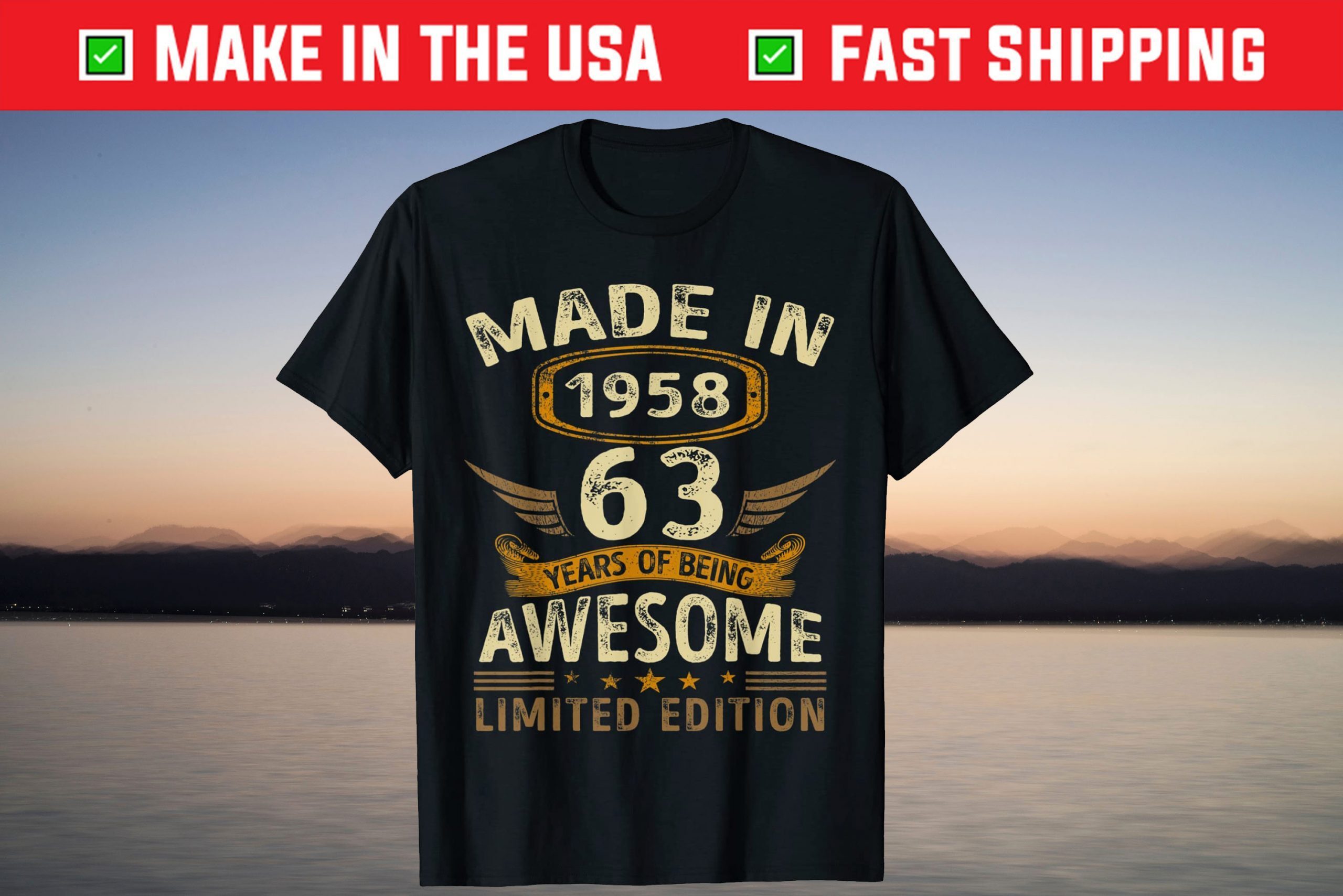 Made In 1958 Being Awesome 63rd Birthday Limited Edition Tee Shirt