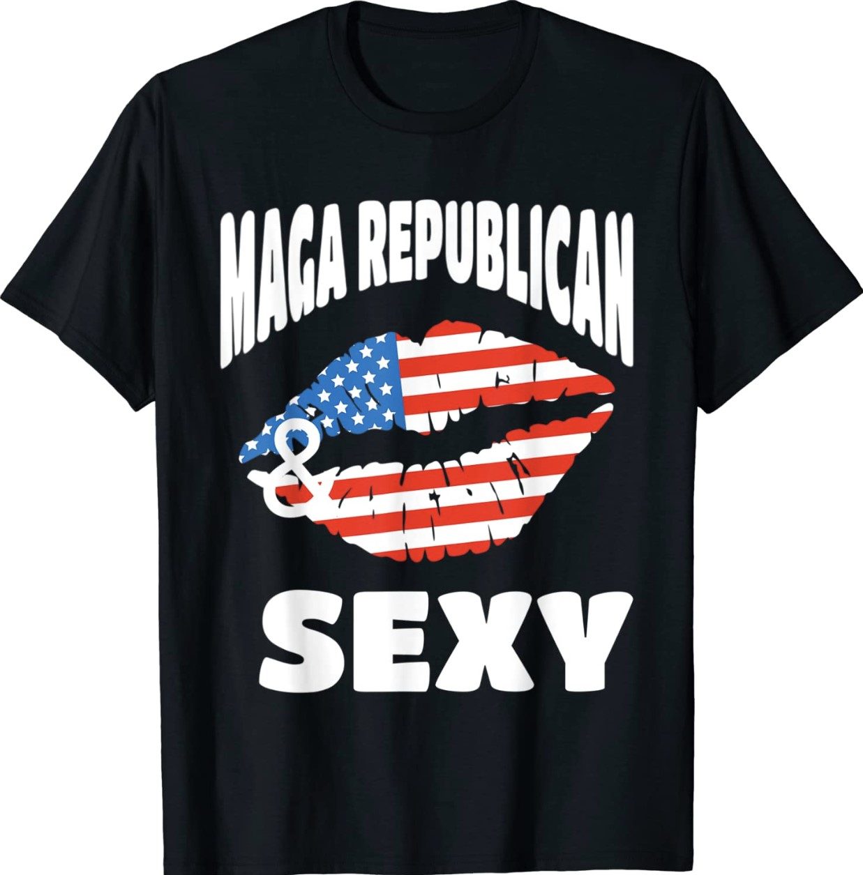 MAGA Republican Sexy With American Flag Lips Vintage TShirt