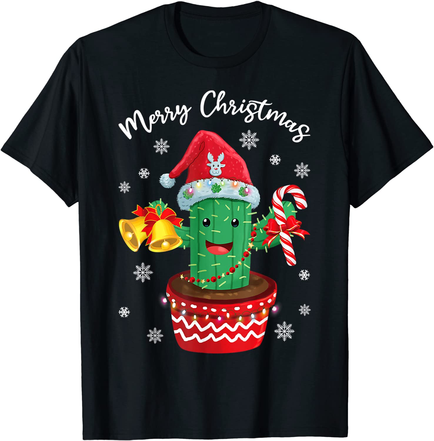 Merry Christmas Cute Cactus Santa Hat Candy Cane Xmas Unisex T-Shirt