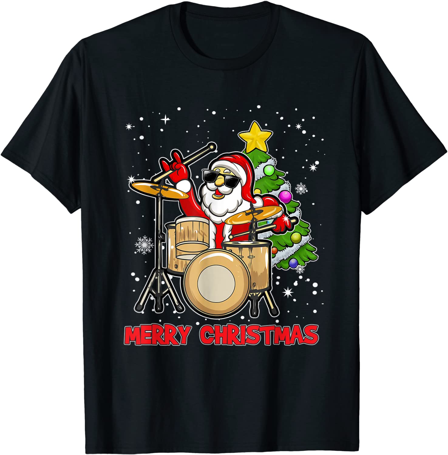Merry Christmas Drum And Santa Drummer Lover Xmas Unisex Shirt