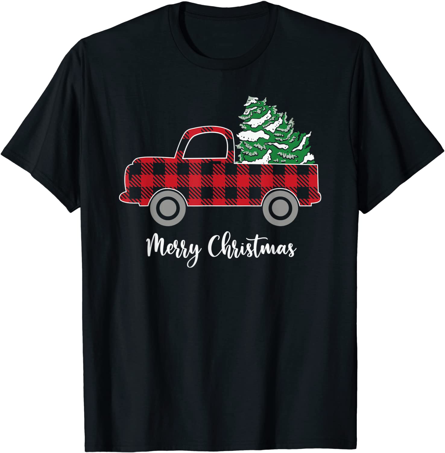 Merry Christmas White Buffalo Plaid Truck Tree Unisex T-Shirt