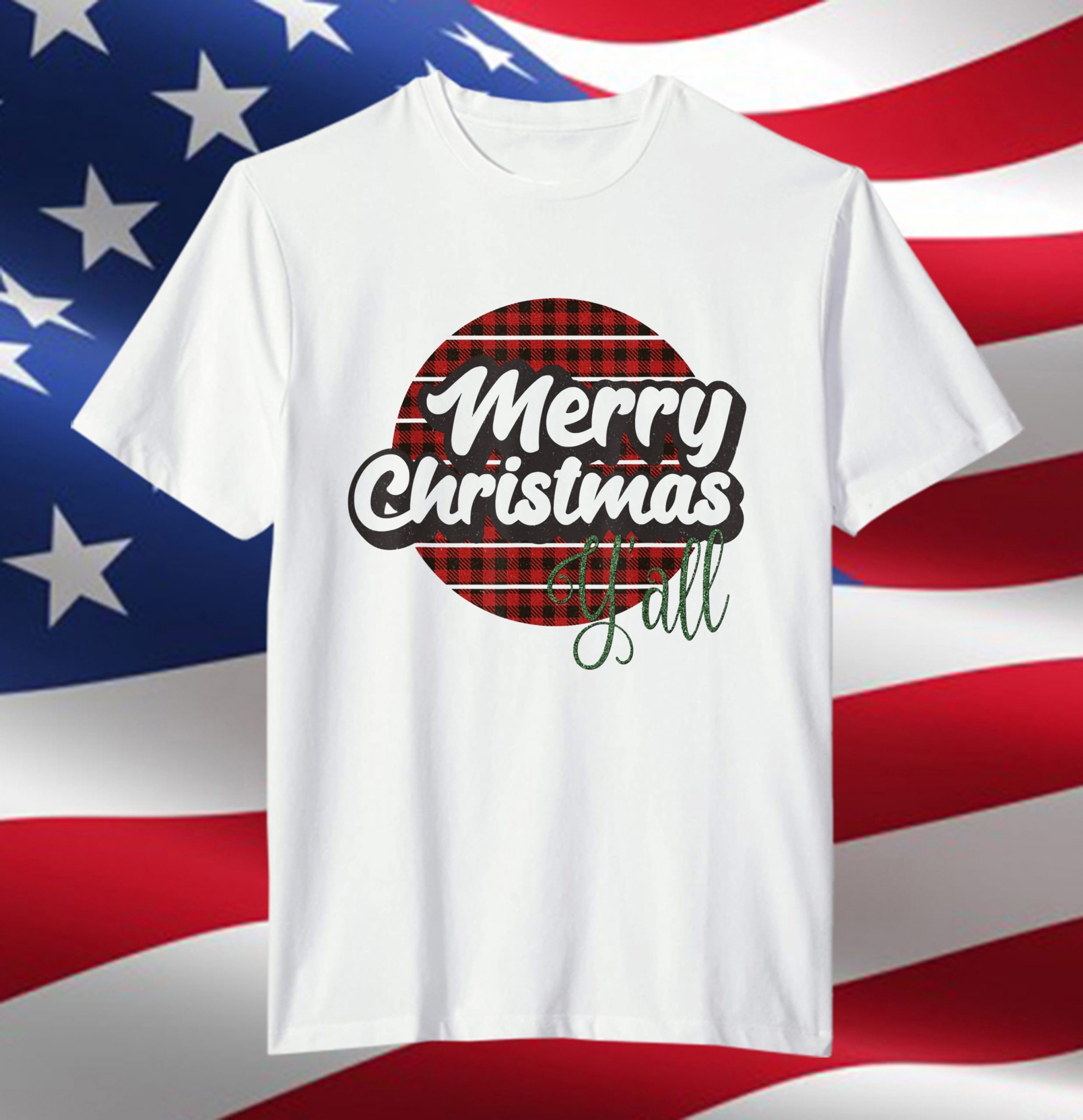 Merry Christmas yall Retro Vintage Buffalo Plaid Pajama T-Shirt