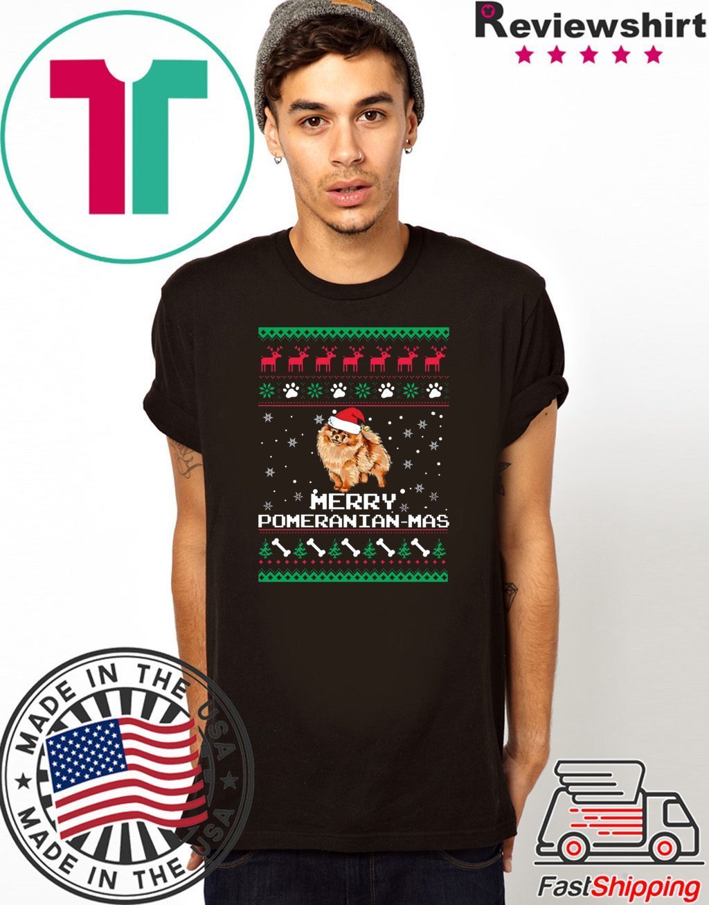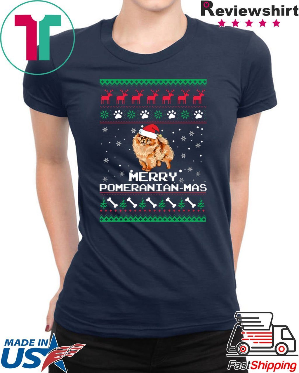 Merry Pomeranian Mas Christmas T-Shirt Perfect Birthday Gift Idea for Men / Women / Kids .Awesome present for dad, father, mom, brother, uncle, husband, wife, adult, son, youth, boy, girl, baby, teen, friend on Birthday / Christmas Day