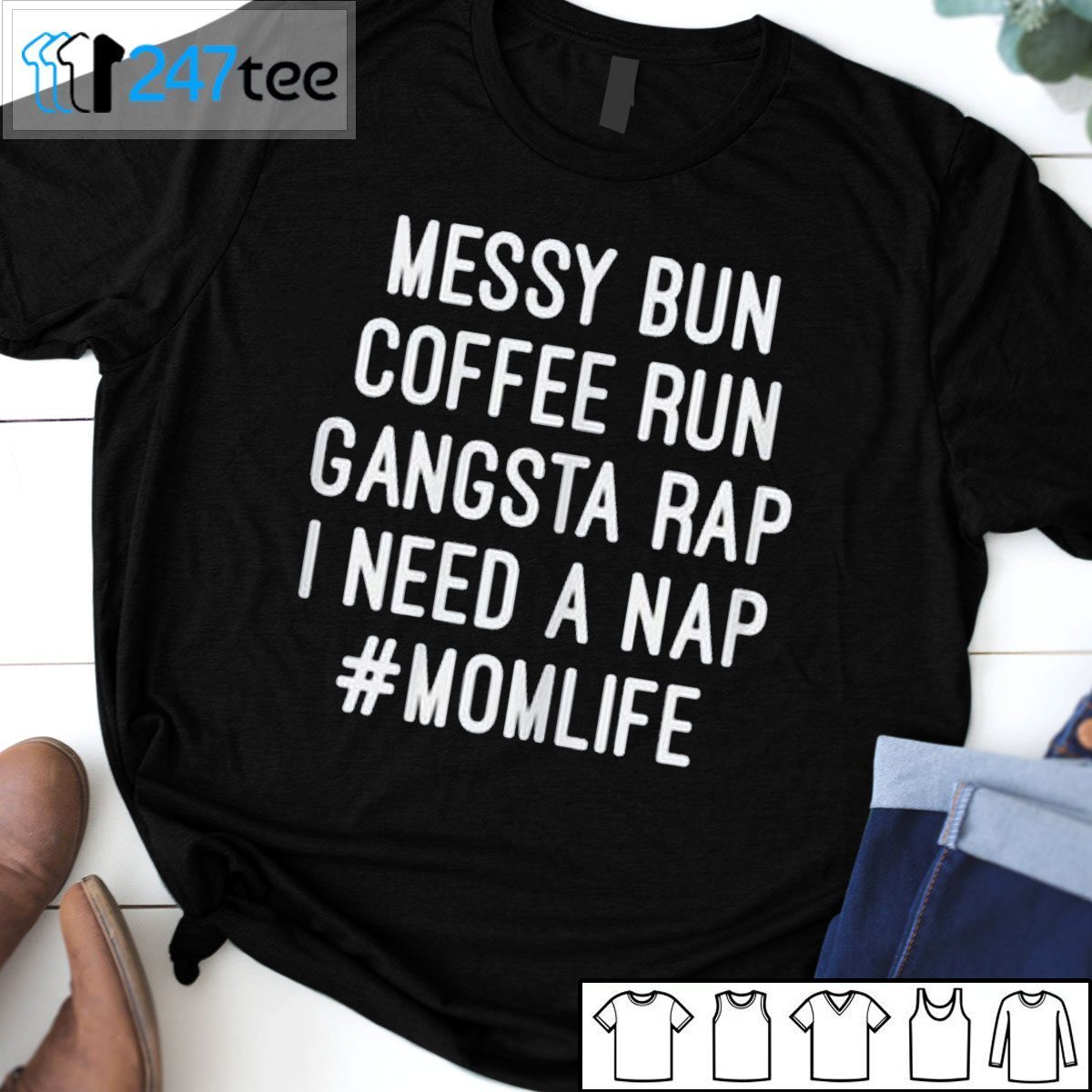 Messy Bun Coffee Run Gangsta Rap I Need A Nap Momlife Gift T-Shirt