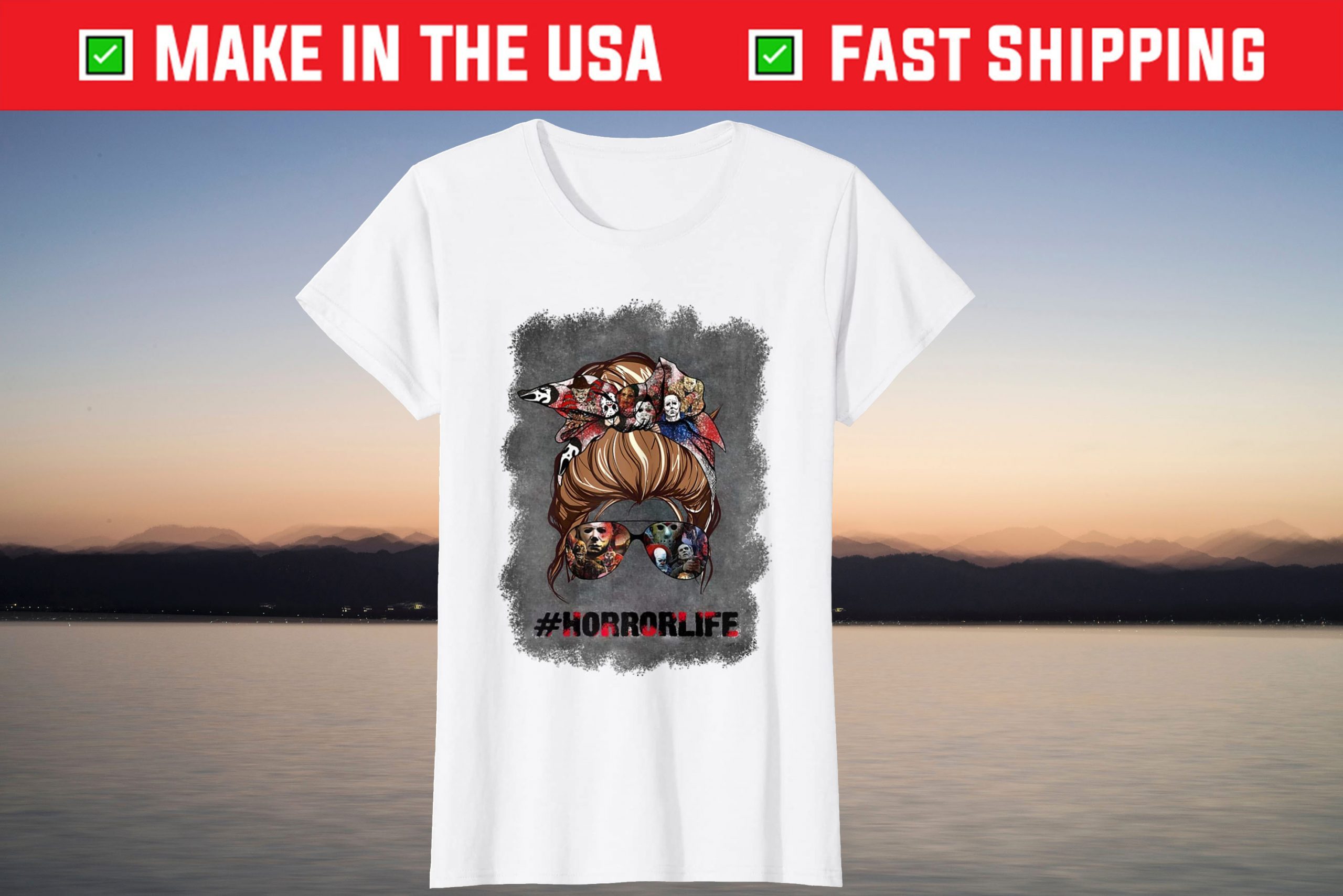 Messy Bun Horror Life Mom Halloween Gift Shirt