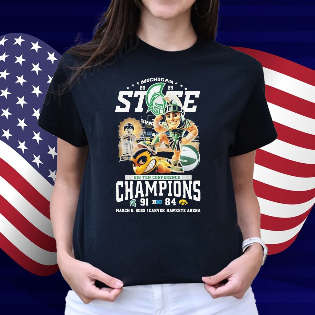 To celebrate this achievement, fans can purchase the “Michigan State Spartans Beat Iowa Hawkeyes Big Ten Conference Champions 2025 March 6 Carver-Hawkeye Arena Mascot” T-shirt. This apparel features the team’s mascot and highlights the significant victory on March 6, 2025.