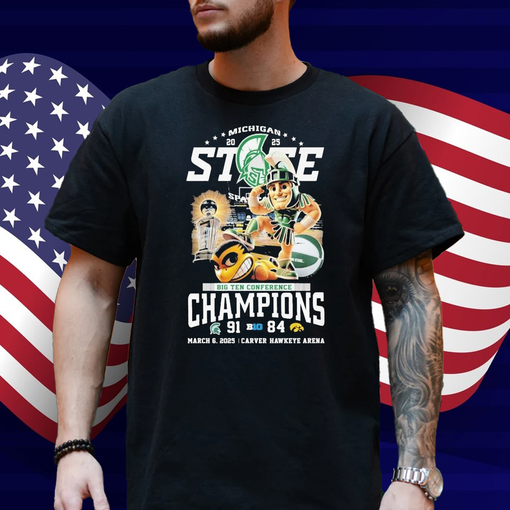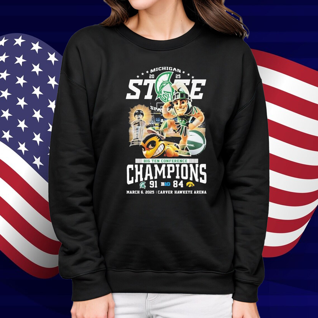 Michigan State Spartans Beat Iowa Hawkeyes Big Ten Conference Champions 2025 March 6 Carver Hawkeye Arena Mascot Shirt