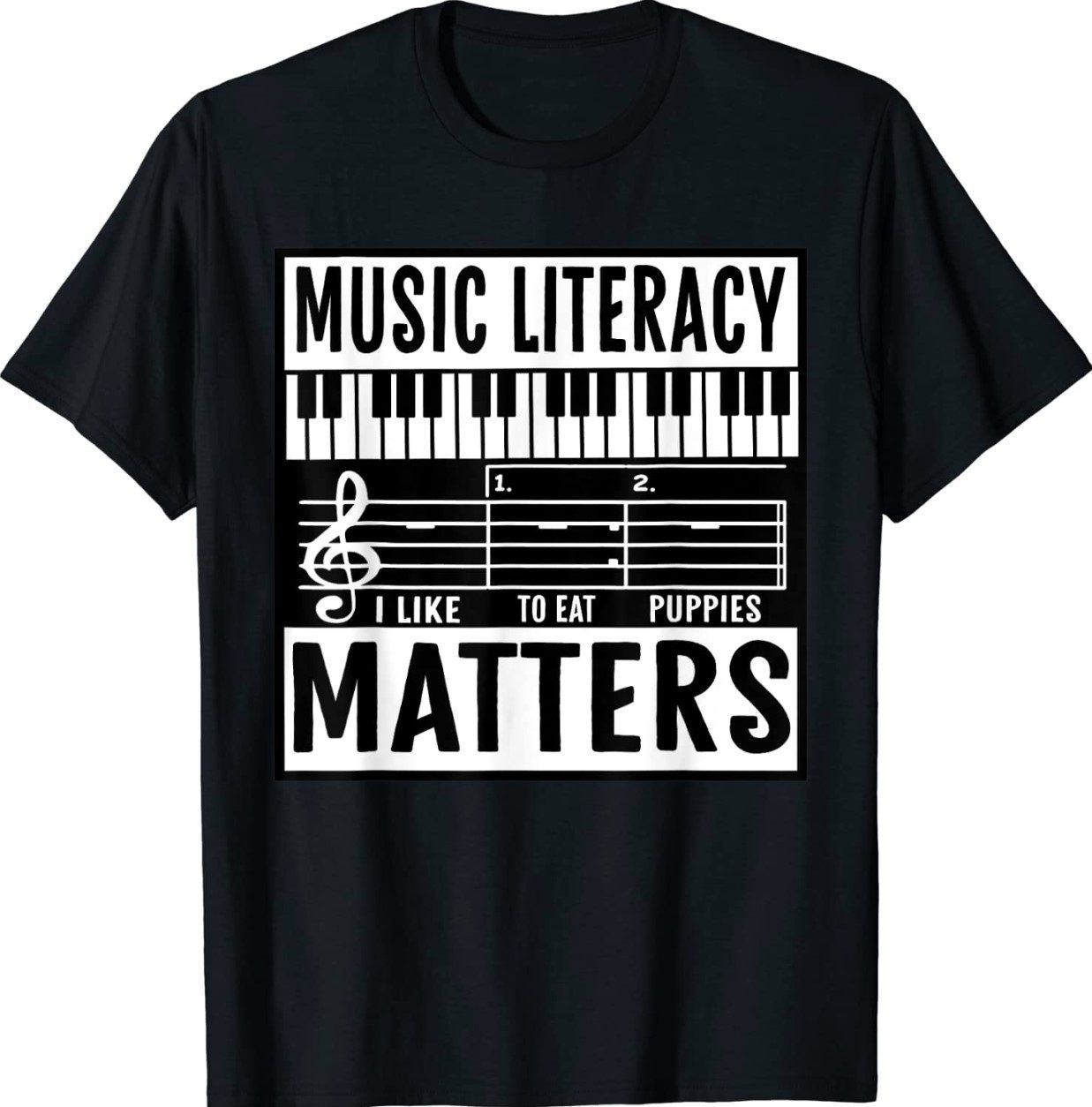 Music Literacy Matters I Like To Eat Puppies Music Meme Funny TShirt