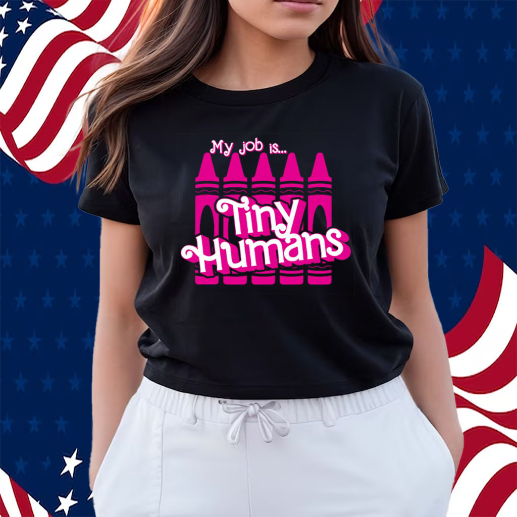 The “My Job Is Tiny Humans Barbie” T-shirt is a humorous and lighthearted shirt that suggests the wearer’s “job” is to care for or interact with children, similar to how children play with Barbie dolls. It’s a playful way to acknowledge the challenges and joys of working with children, such as being a parent, teacher, daycare worker, or nanny.