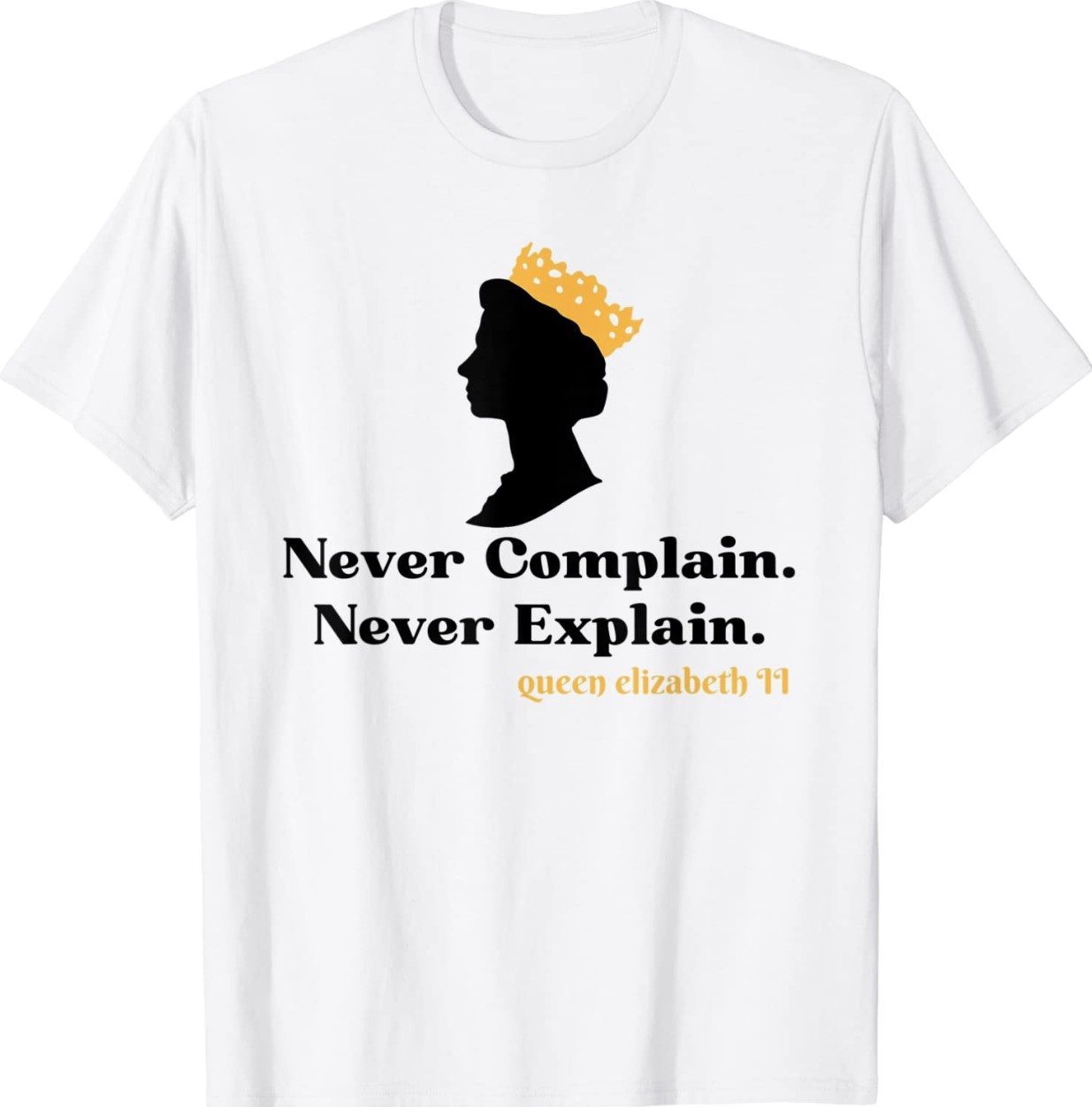 Never Complain Never Explain Queen II Elizabeth England Tee Shirt