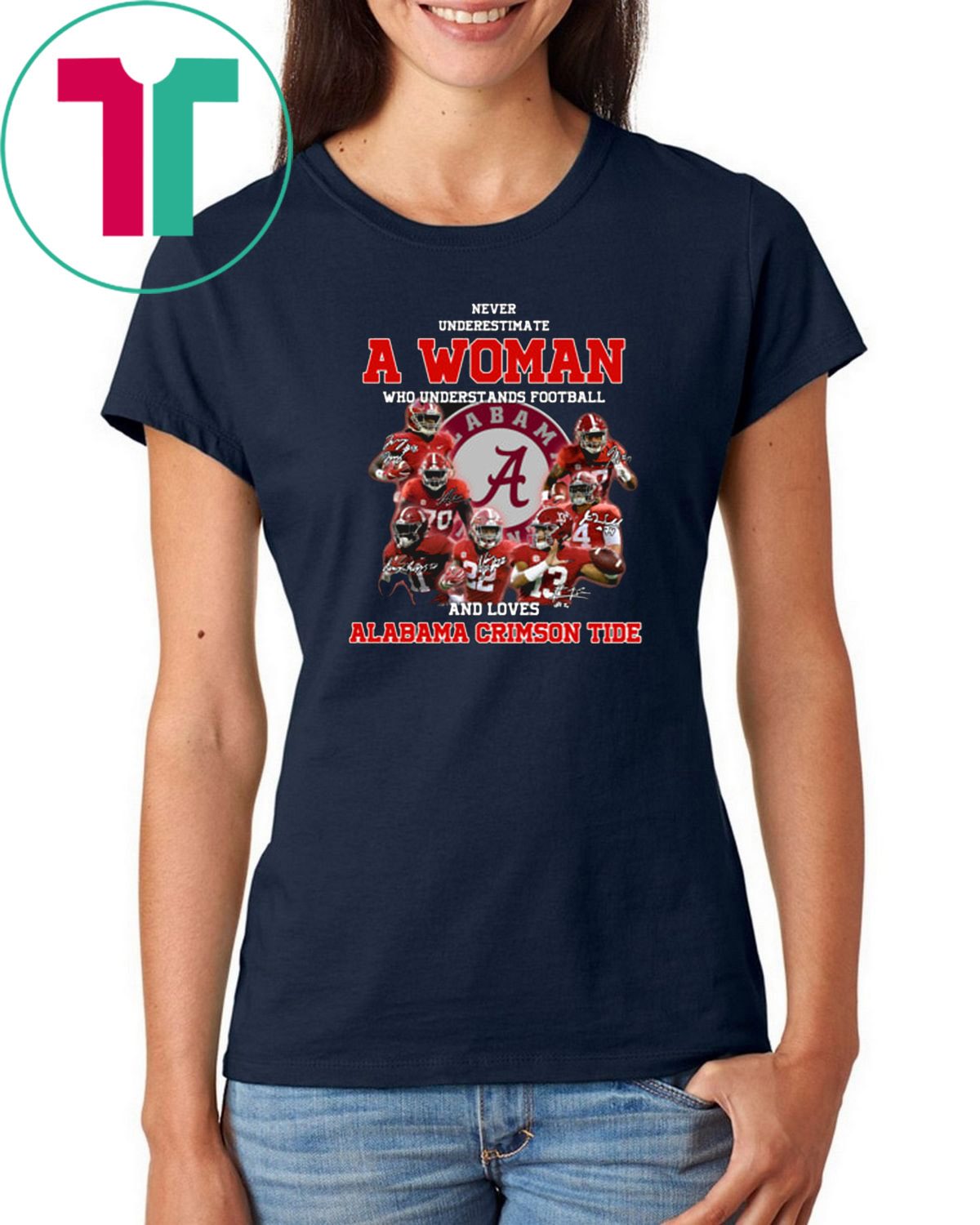 Never underestimate a woman who understands football and loves alabama crimson tide shirt Perfect Birthday Gift Idea for Men / Women / Kids .Awesome present for dad, father, mom, brother, uncle, husband, wife, adult, son, youth, boy, girl, baby, teen, friend on Birthday / Christmas Day