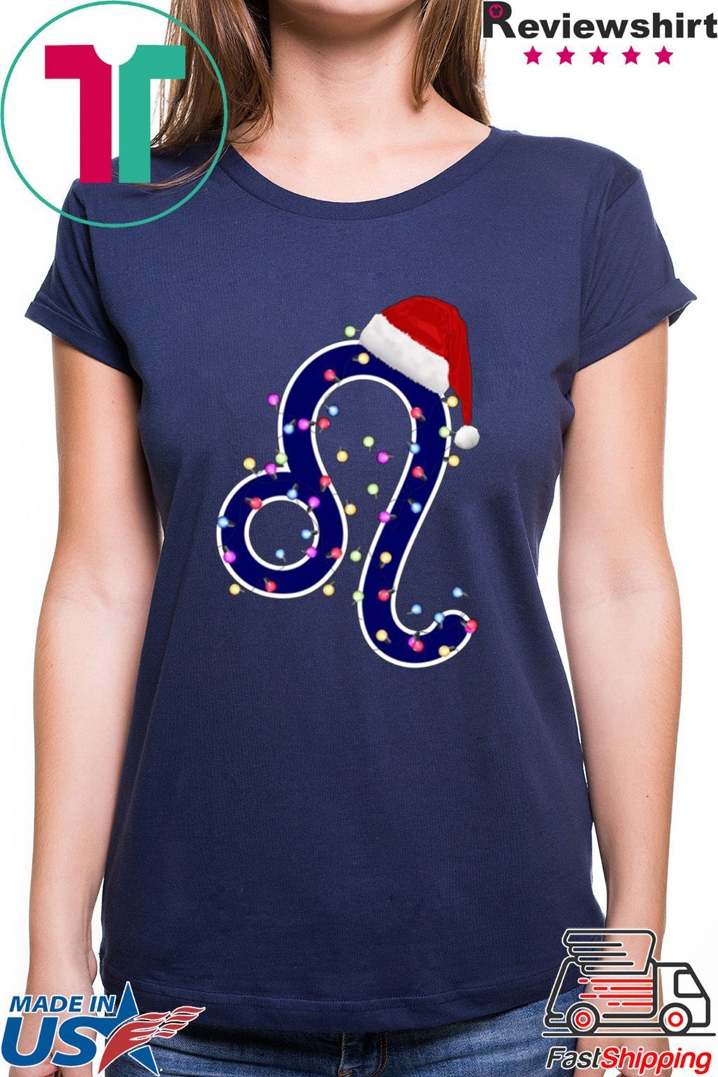 Nice Leo Zodiac Sign In Christmas Lights And Santa’s Hat T-Shirt Perfect Birthday Gift Idea for Men / Women / Kids .Awesome present for dad, father, mom, brother, uncle, husband, wife, adult, son, youth, boy, girl, baby, teen, friend on Birthday / Christmas Day
