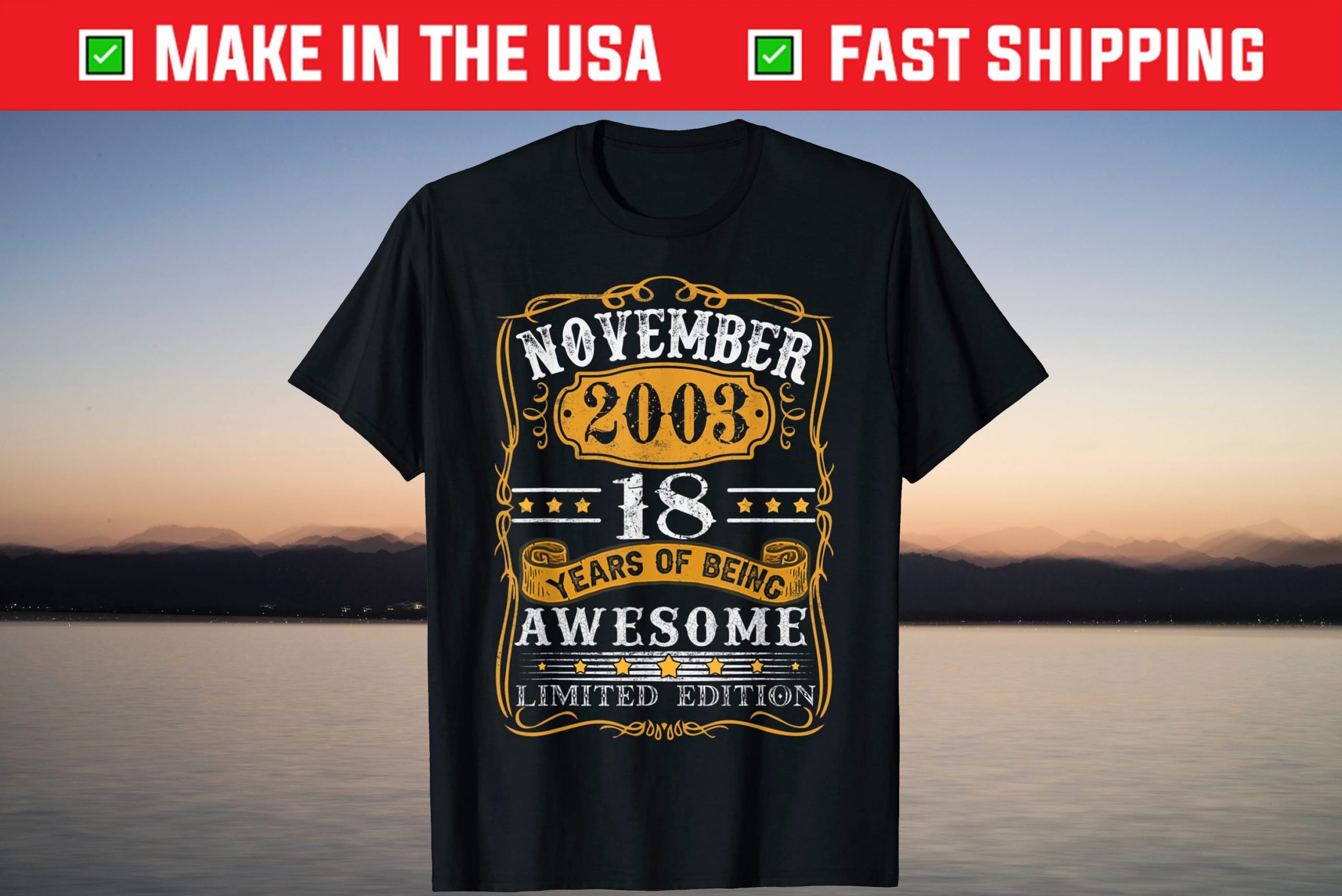 November 18 Years Old Made In 2003 Limited Edition Birthday T-Shirt