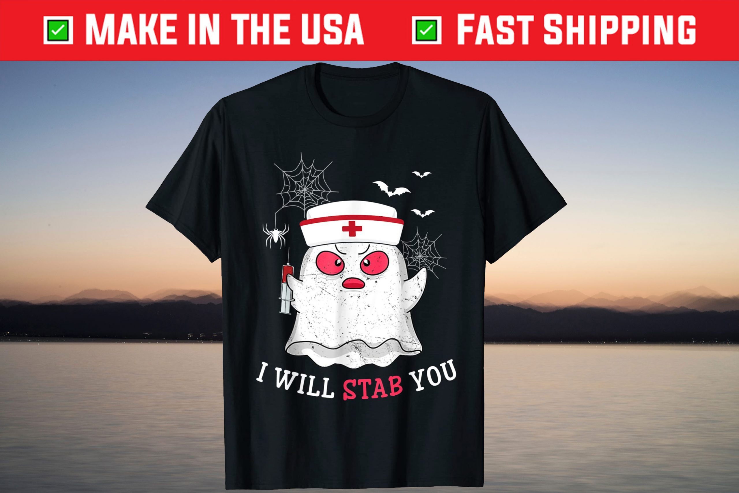 Nurse Ghost I Will Stab You Pumpkin Boo Halloween T-Shirt