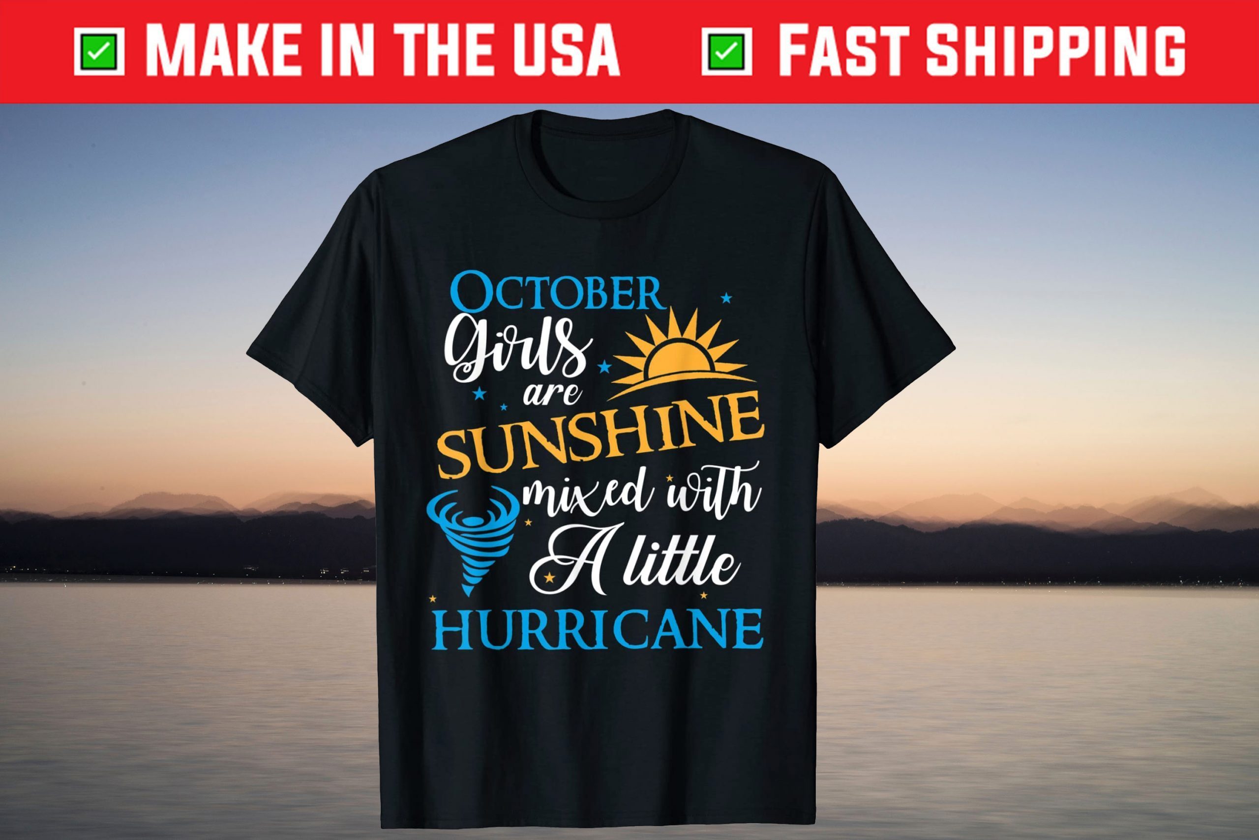 October Girls Are Sunshine Birthday Mixed With A Little Hurricane Gift T-shirt