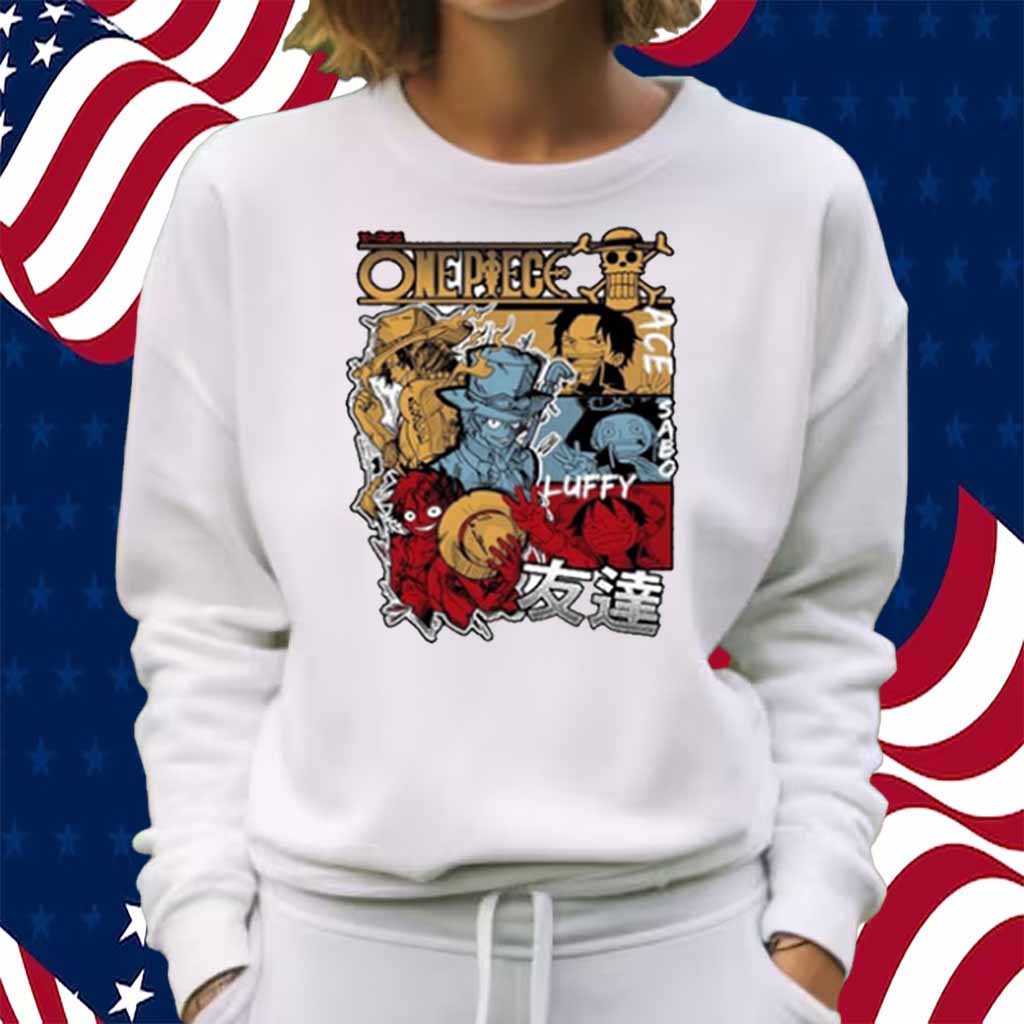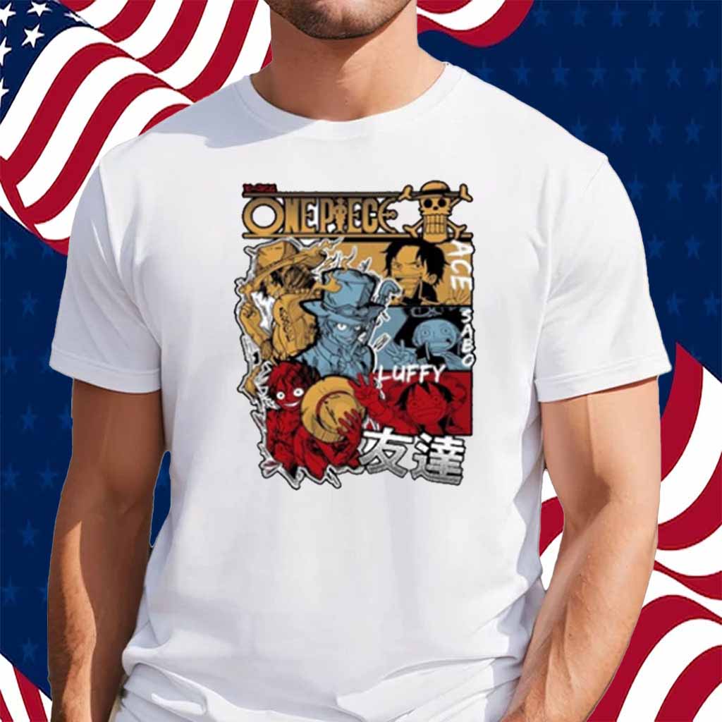 - Emblazoned with the iconic symbols of Luffy, Ace, and Sabo, this shirt pays homage to the unbreakable bond between the three brothers.