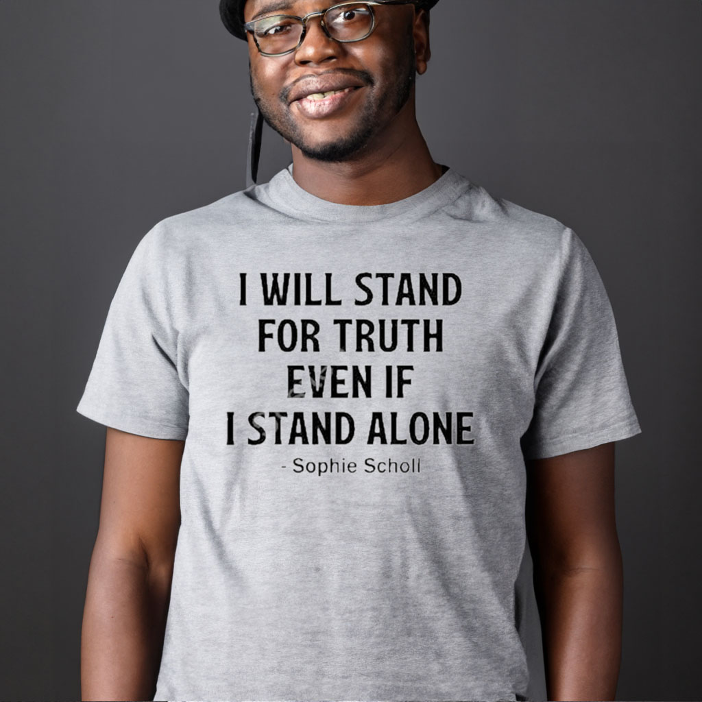 The standout feature of this t-shirt is its captivating design. The bold and impactful statement, “I Will Stand For Truth Even If I Stand Alone,” emblazoned across the chest, serves as a reminder of the unyielding commitment to upholding God’s truth, even in the face of adversity. This design is not only visually striking but also sparks conversations and inspires others to stand firm in their beliefs.