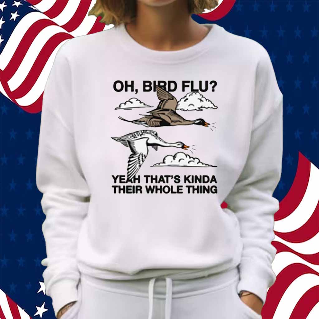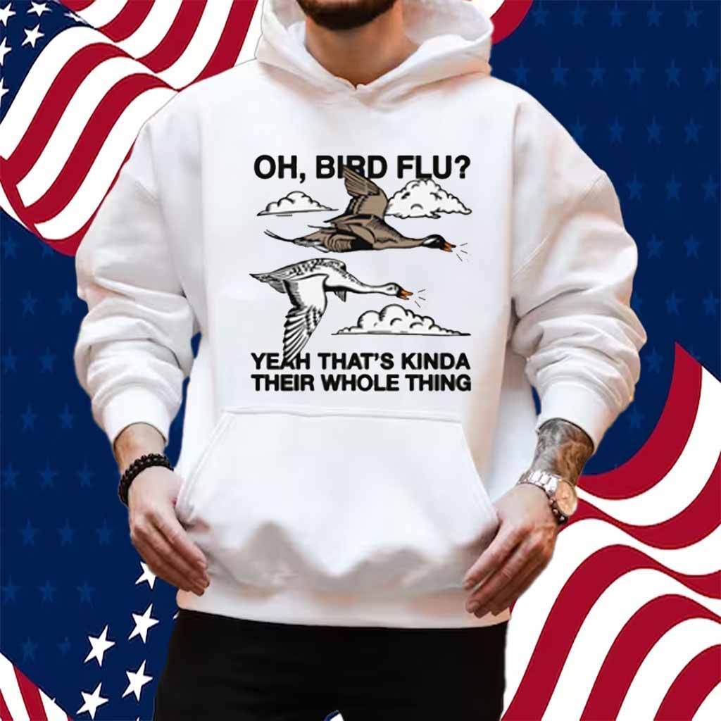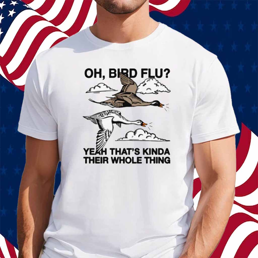Don’t miss out on this opportunity to add a touch of humor and bird-themed style to your wardrobe. Order your “Oh, Bird Flu? Yeah That’s Kinda Their Whole Thing” shirt today and let the world know that birds are your thing!