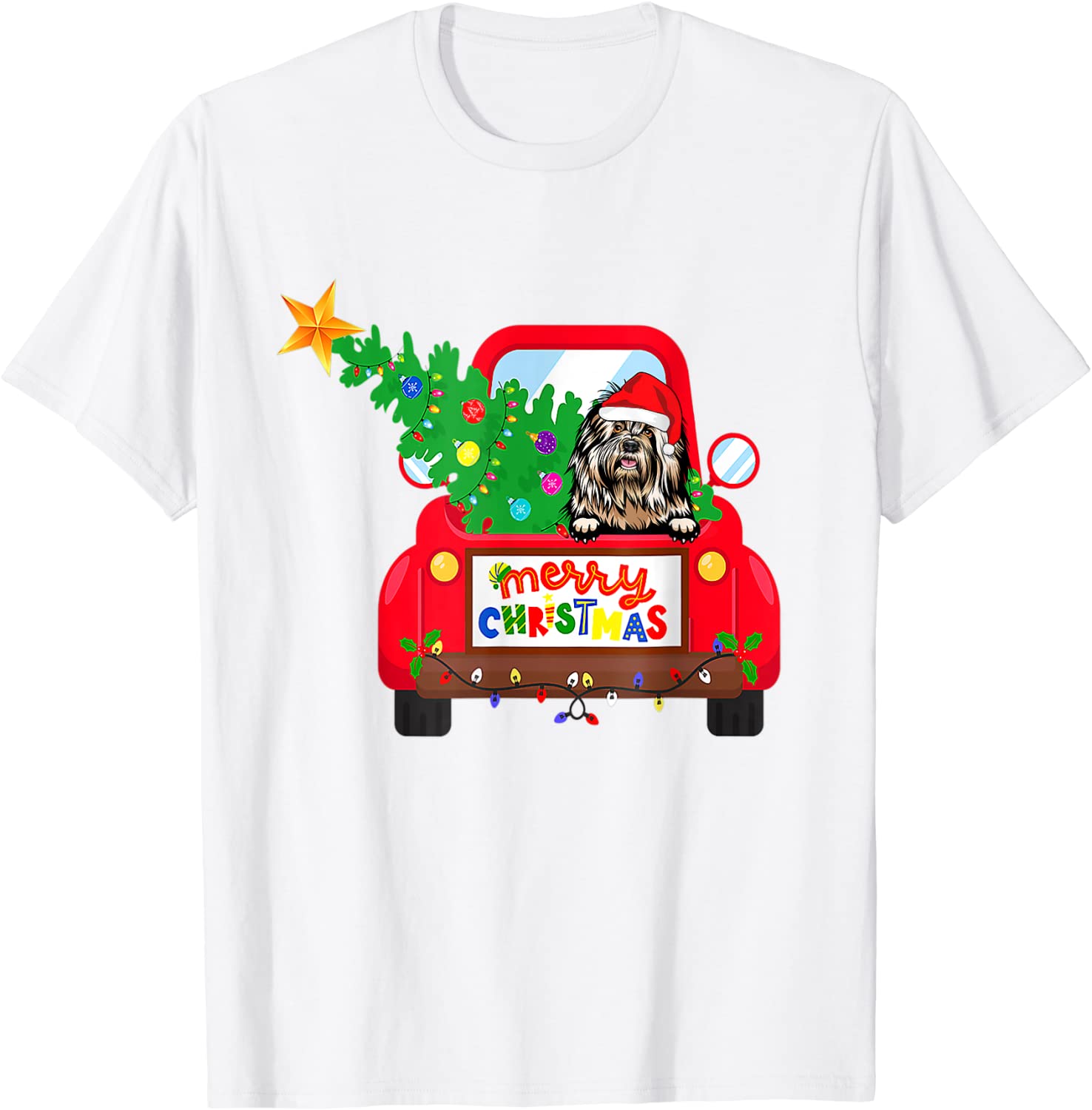 Old English Sheepdog Dog Riding Red Truck Christmas Pajama Gift Shirt