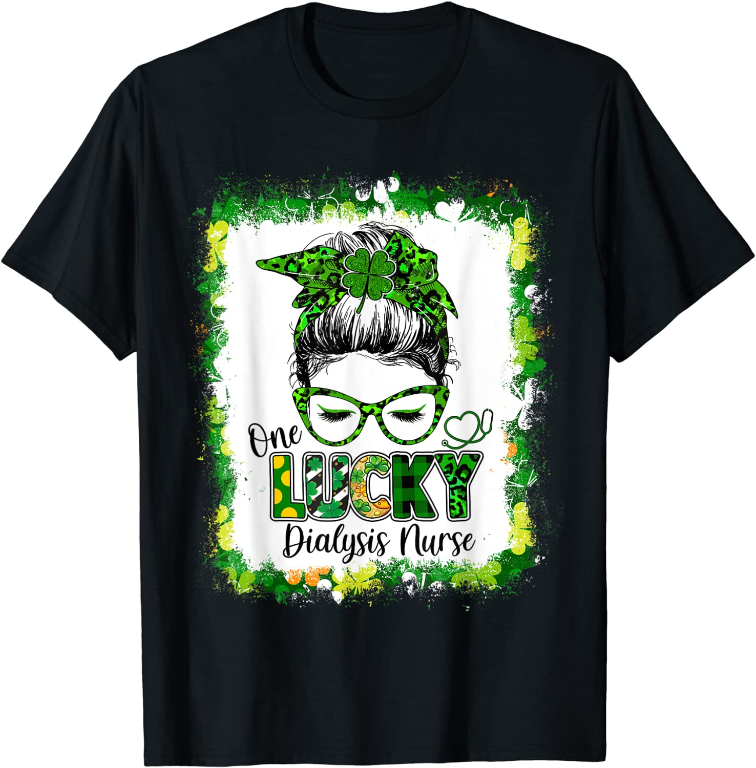 One Lucky Dialysis Nurse Messy Bun Shamrock St Patrick’s Day Limited Shirt