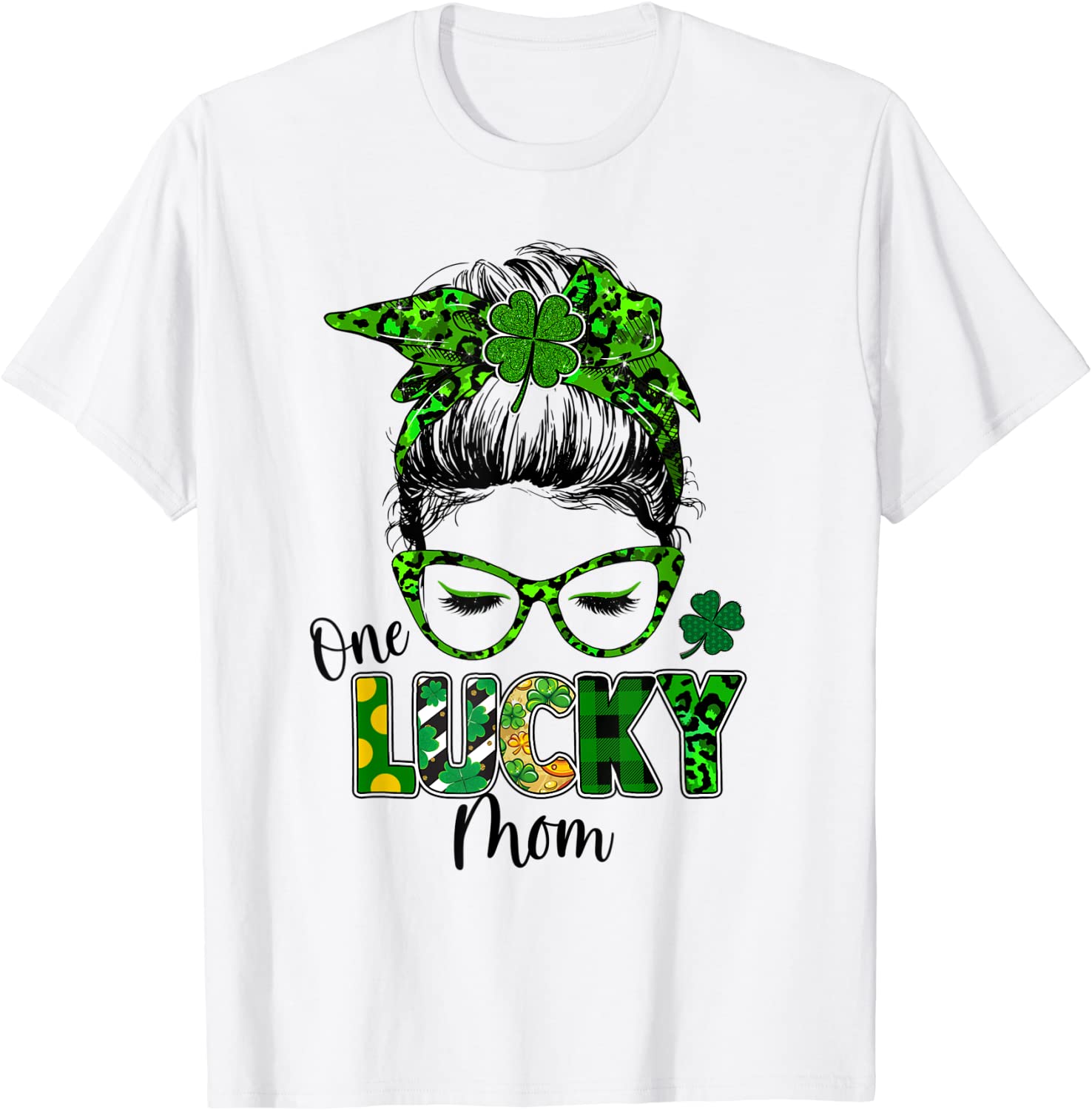 One Lucky Mom Messy Bun Shamrock St Patrick’s Day Unisex Shirt