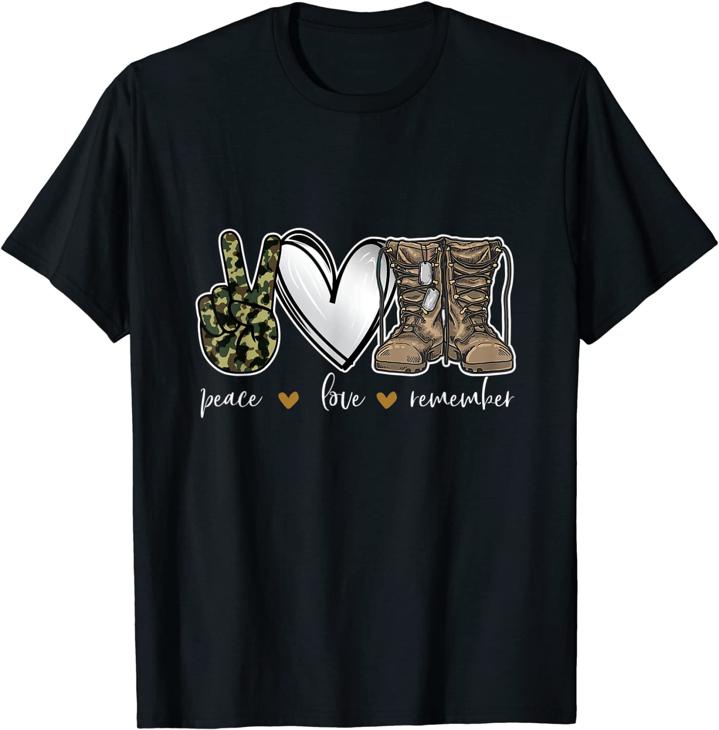 Peace Love Remember Combat Boots USA Flag Veteran Day 2021 T-Shirt